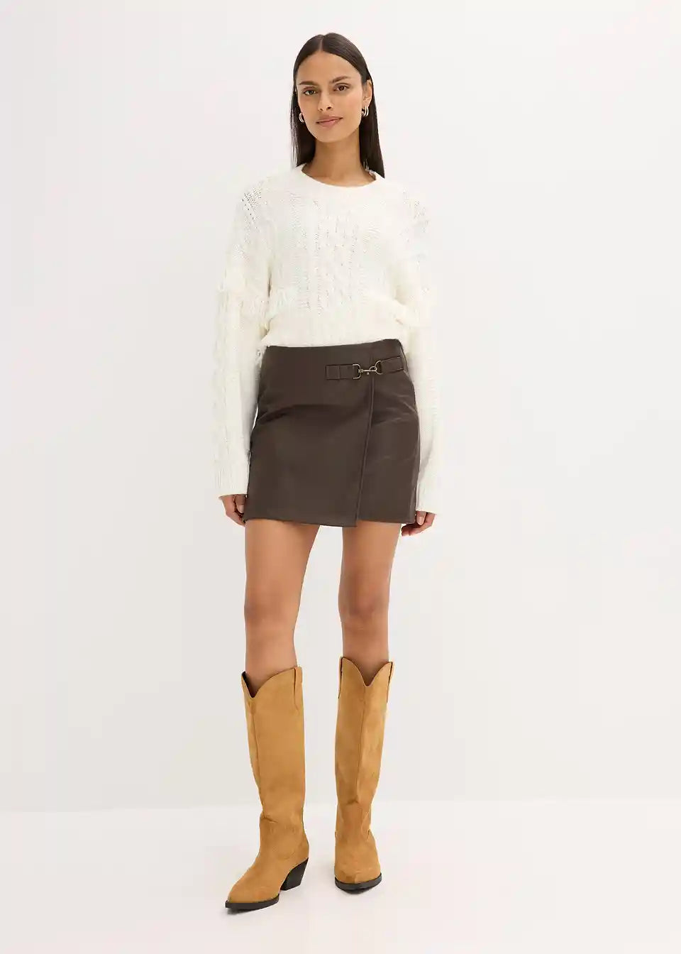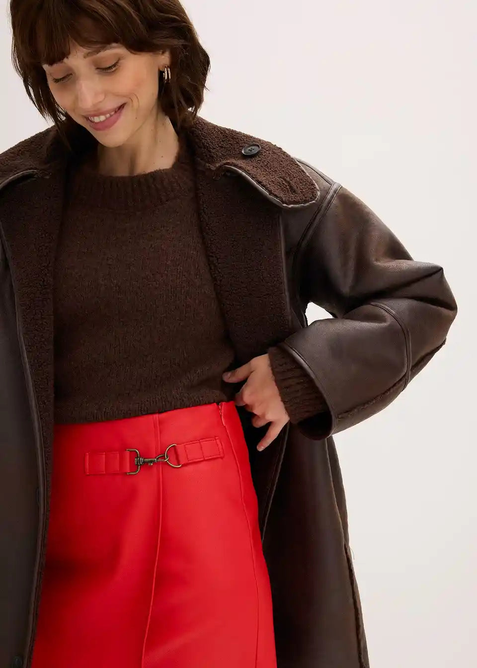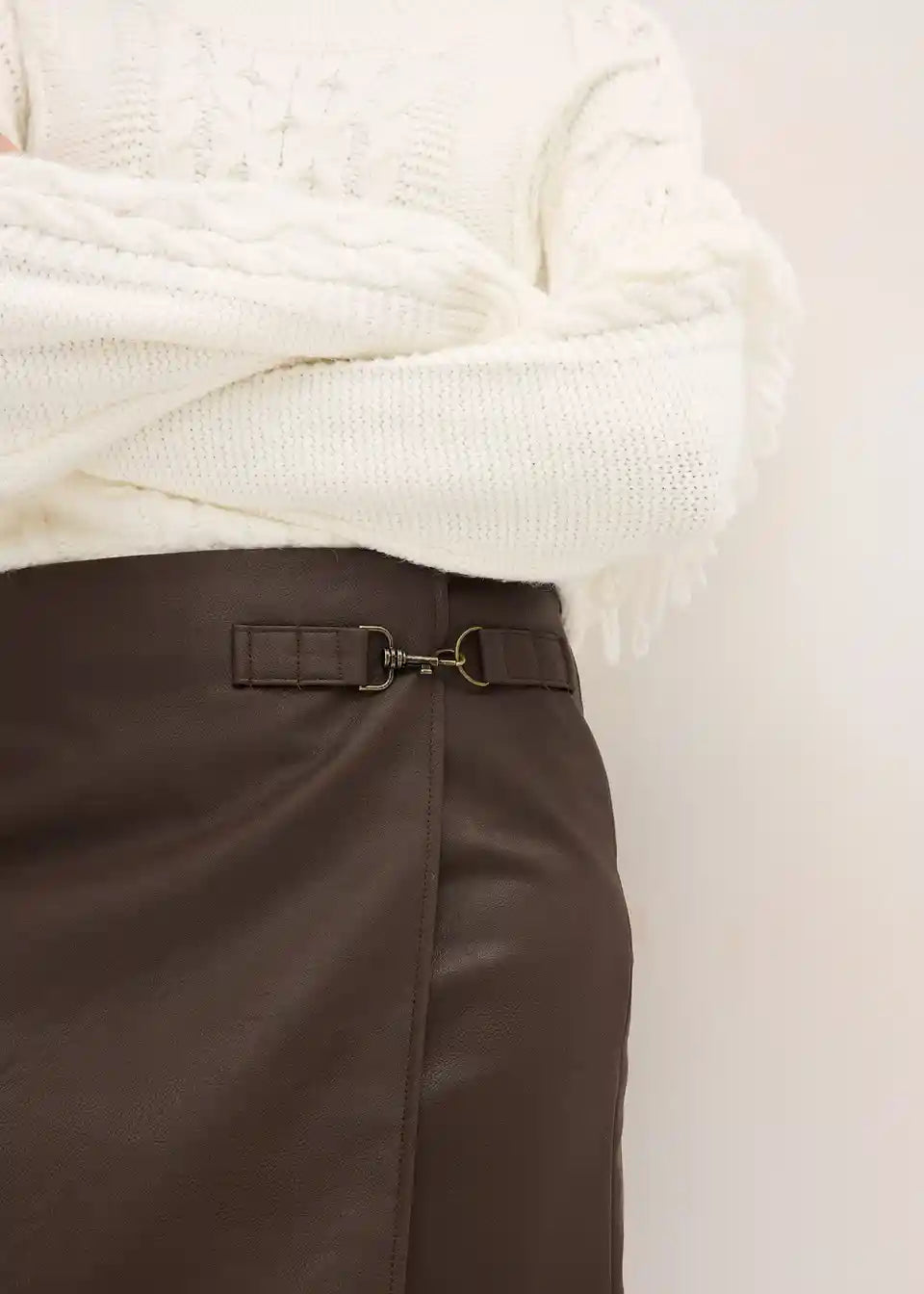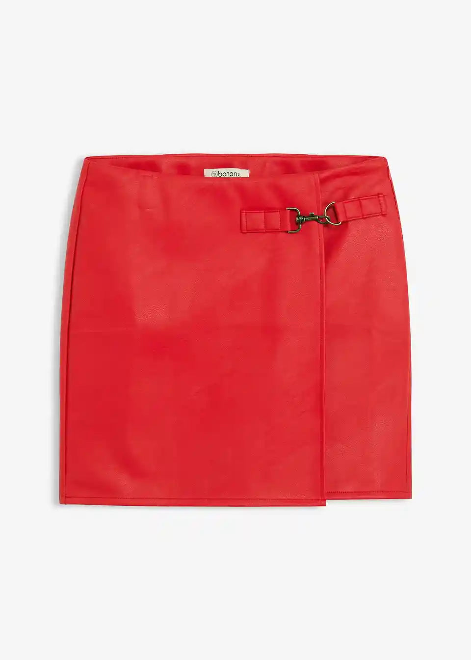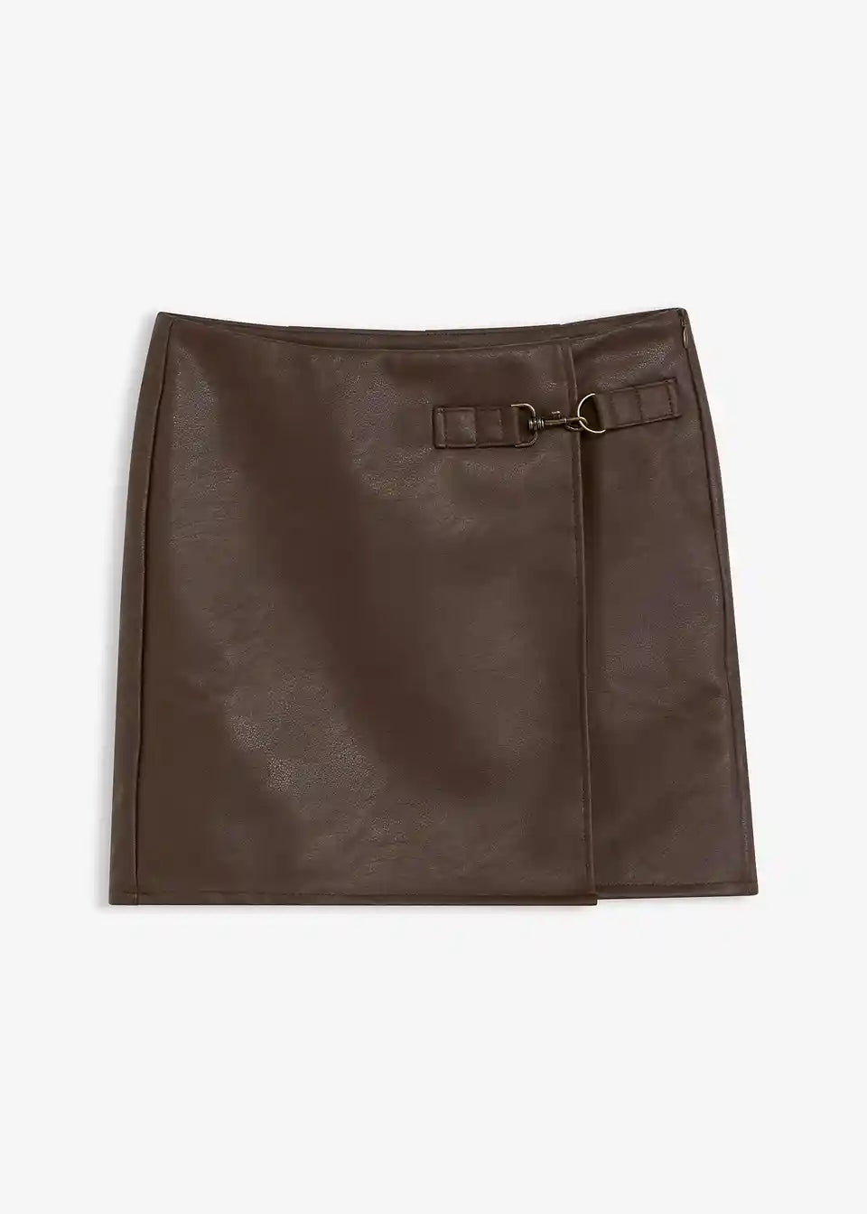 Kratko krilo iz umetnega usnja z modno zaponko spredaj na strani