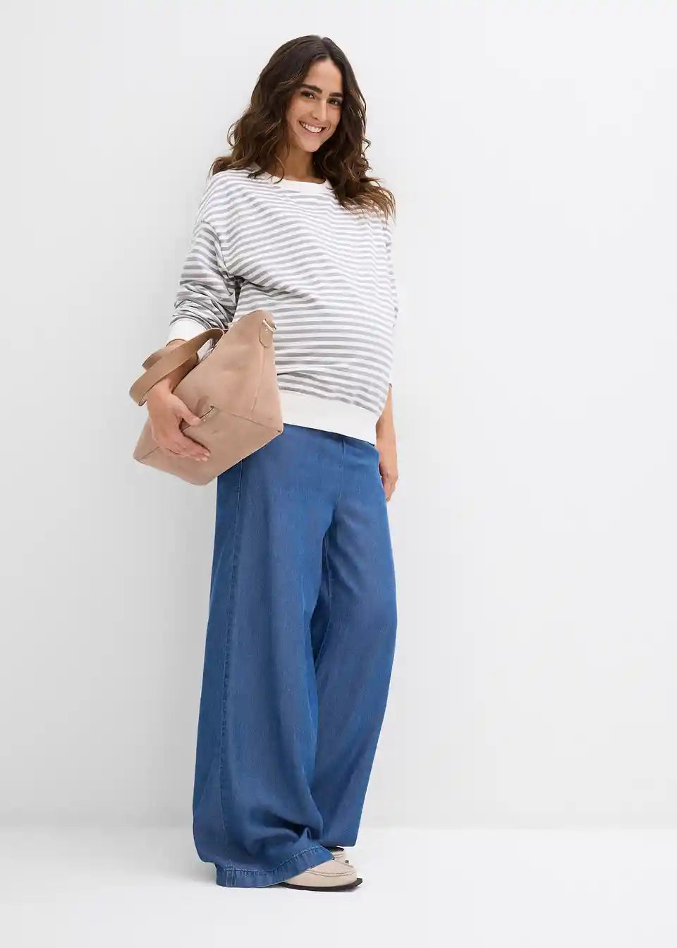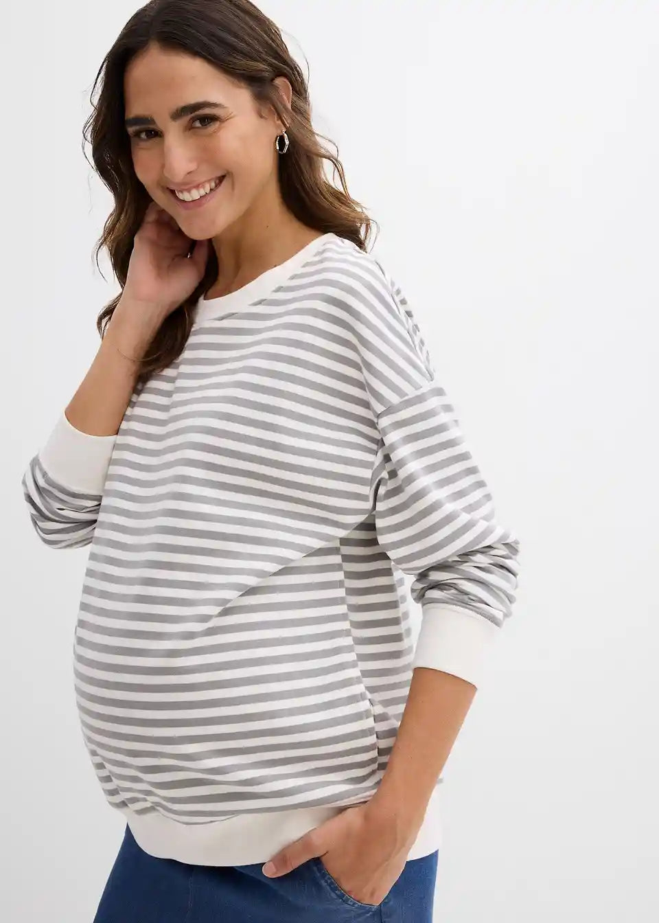 Čez boke dolga majica iz trikoja za nosečnost in potem