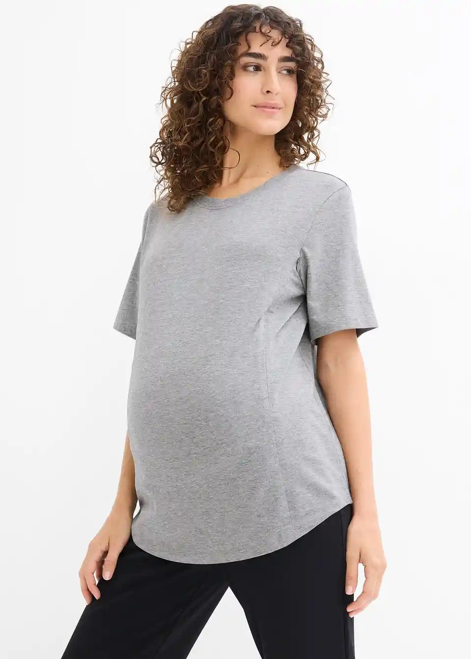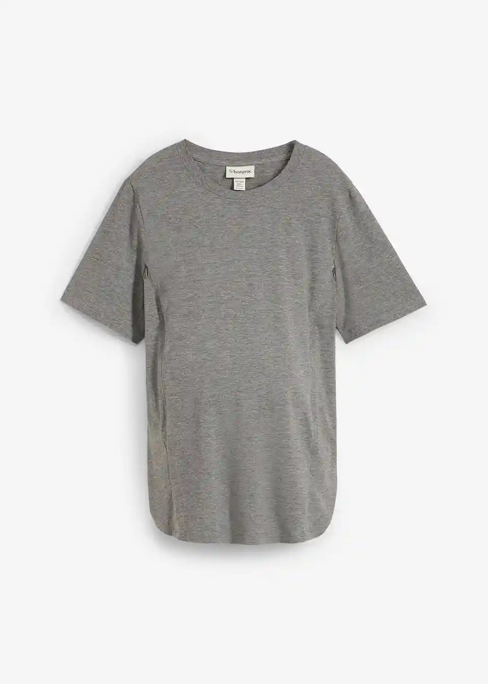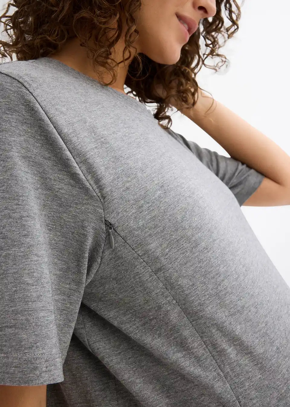 Praktična nosečniška osnova iz mehkega jerseyja iz ekološkega bombaža z nekaj raztegljivosti za prijetno udobje pri nošenju. Z okroglim izrezom in kratkimi rokavi v laskavi dolžini. Dve diskretno všiti zadrgi na sprednjem delu po porodu omogočata enostavno in diskretno dojenje, ne da bi se preveč razgalili.