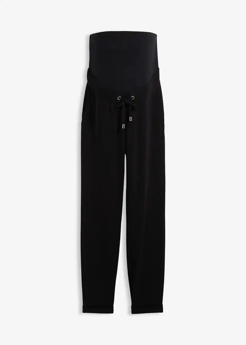 Nosečniške jogging hlače iz Lenzing® Ecovero® z elastičnim pasom in visokim nosečniškim vložkom za optimalno oporo. Srebrne luknjice in zaključki vrvice z vozlom ustvarjajo diskretne poudarke. Idealno za sproščen vsakdanji videz med nosečnostjo.