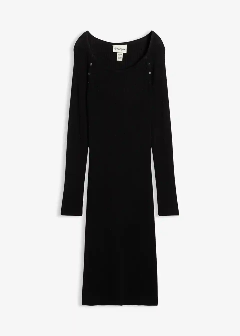 Oprijeta in udobna obleka za nosečnost in dojenje z okrasnimi gumbi, ki služijo tudi za funkcijo dojenja.