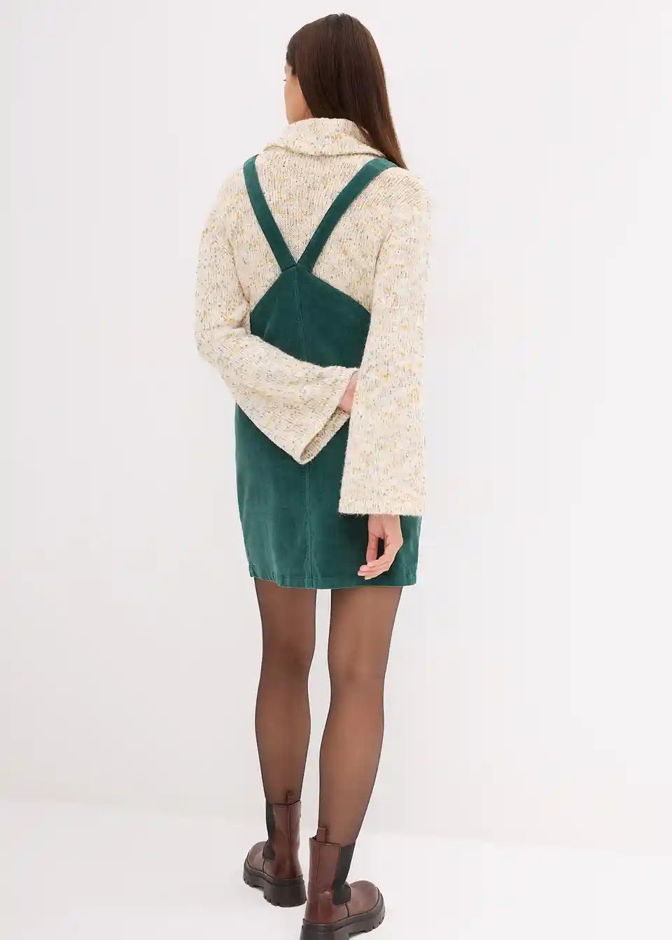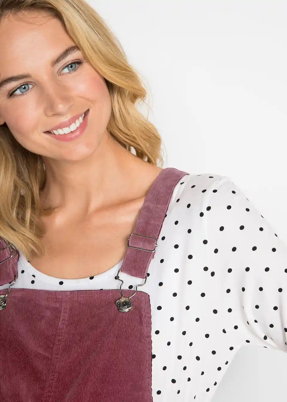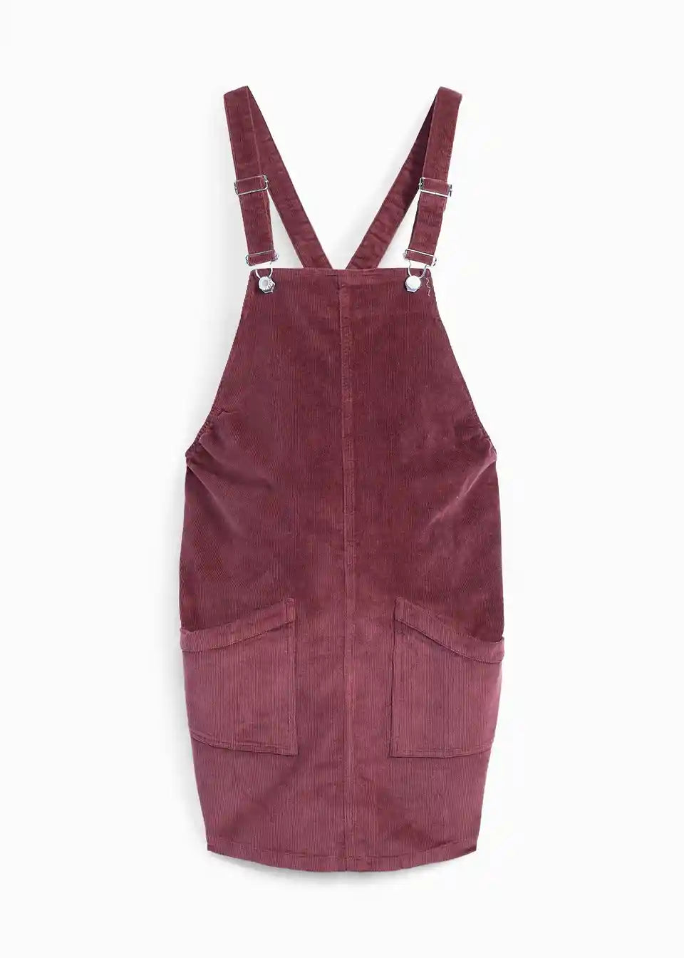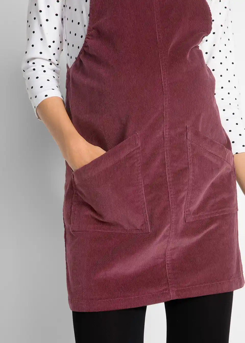 Obleka iz mehkega bombažnega rebrastega žameta z elastanom. Z nastavljivimi naramnicami in žepi na sprednji strani.