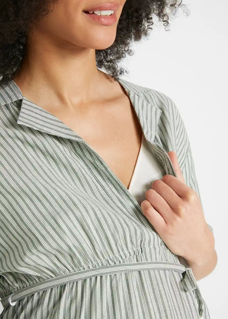 Srajčna obleka za nosečnost in dojenje s trakom za zavezovanje