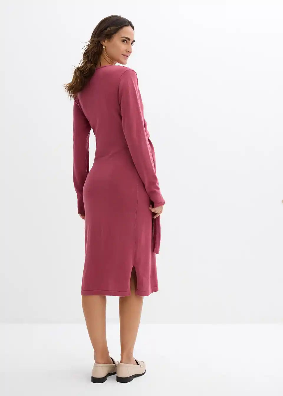 Midi obleka z dolgimi rokavi iz mehke bombažne pletenine