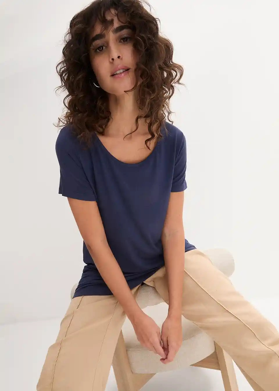 Preprosta osnovna majica z okroglim izrezom in viskozo