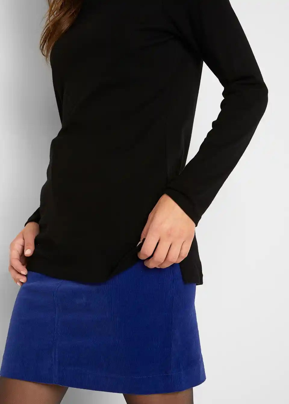 Raztegljiva majica z visokim ovratnikom in stranskimi razporki, primerna za različne priložnosti