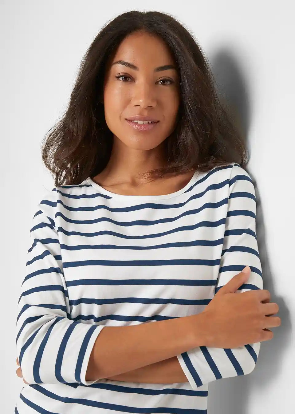 Udobna osnovna majica iz raztegljivega bombaža z izrezom čolniček