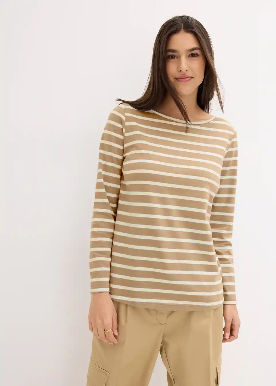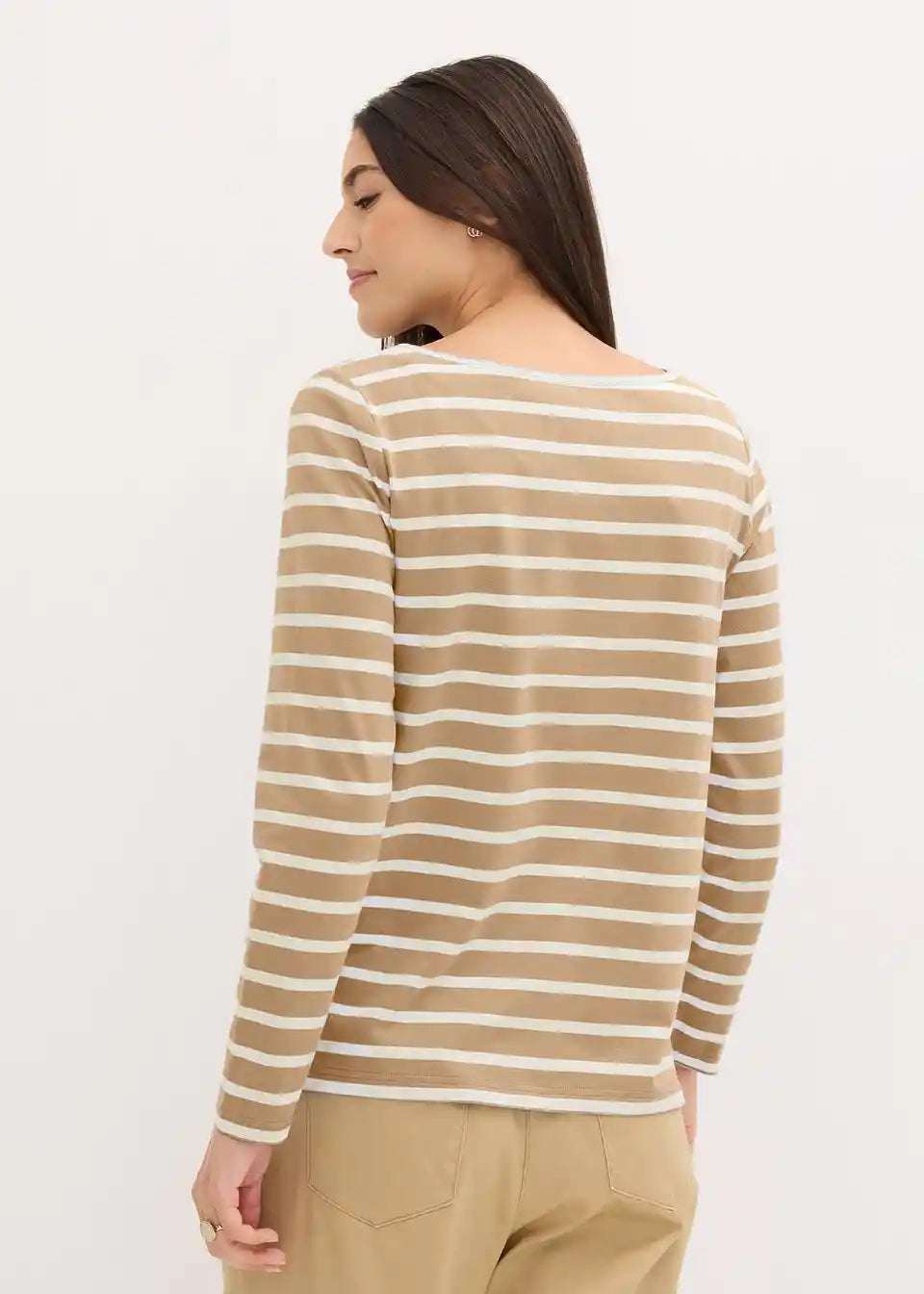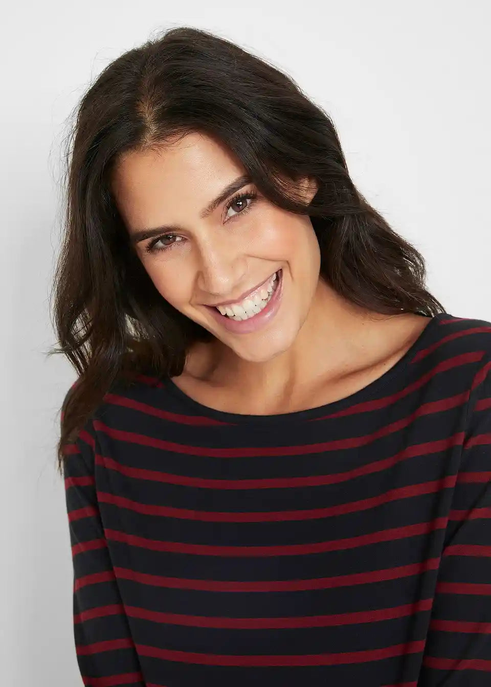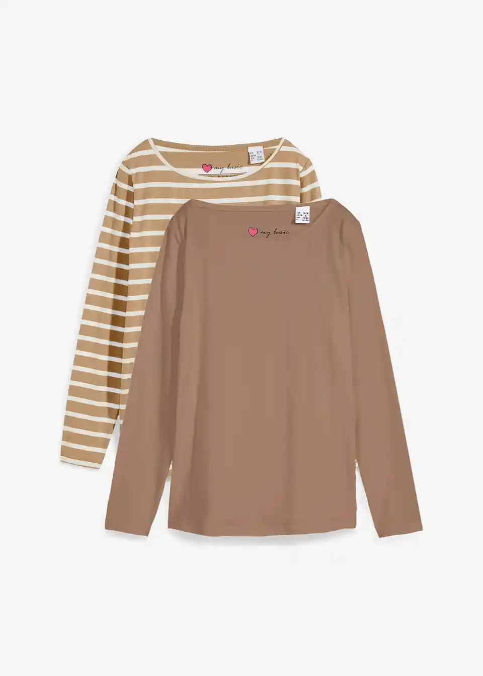 Majica z ladijskim izrezom in dolgimi rokavi (2 kosa)