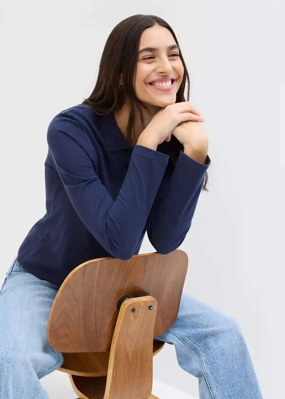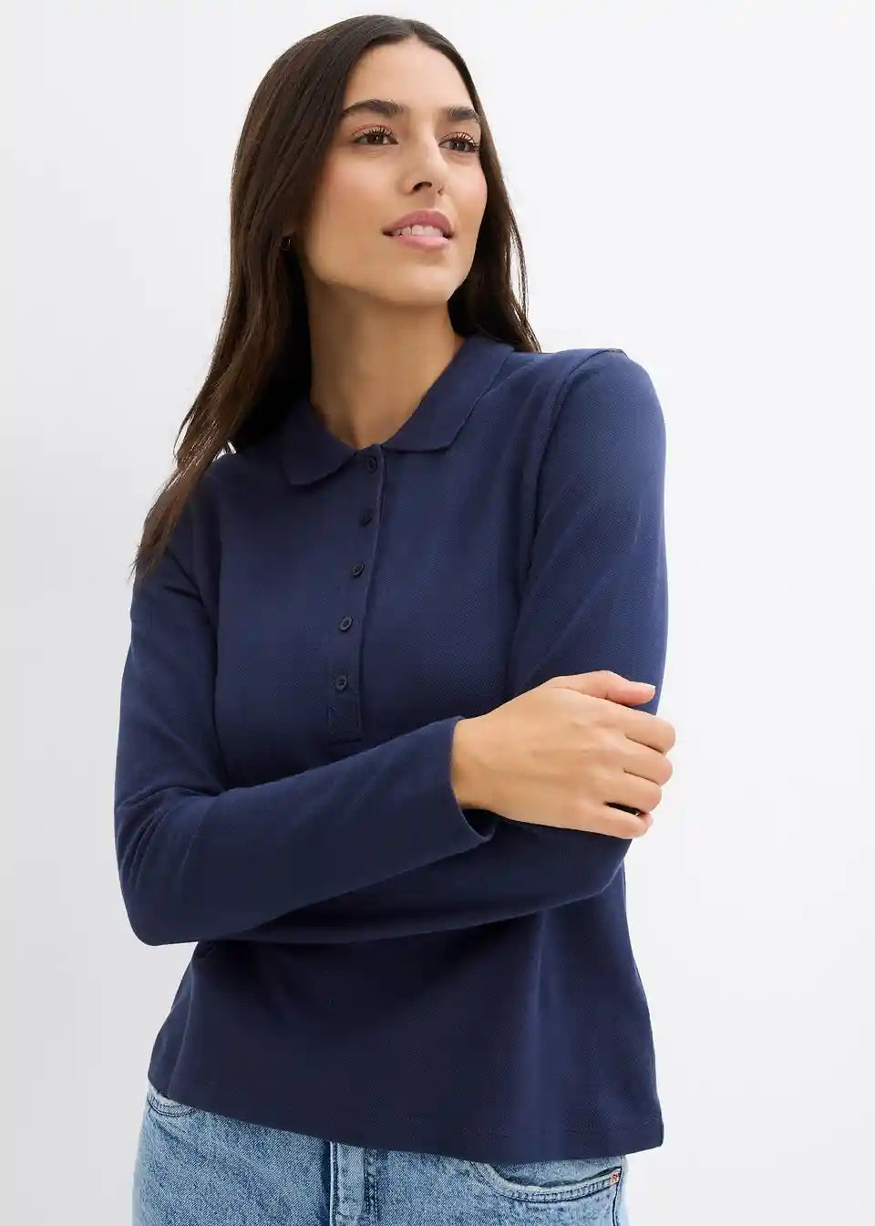 Čudovit Piqué-poloshirt z dolgimi rokavi
