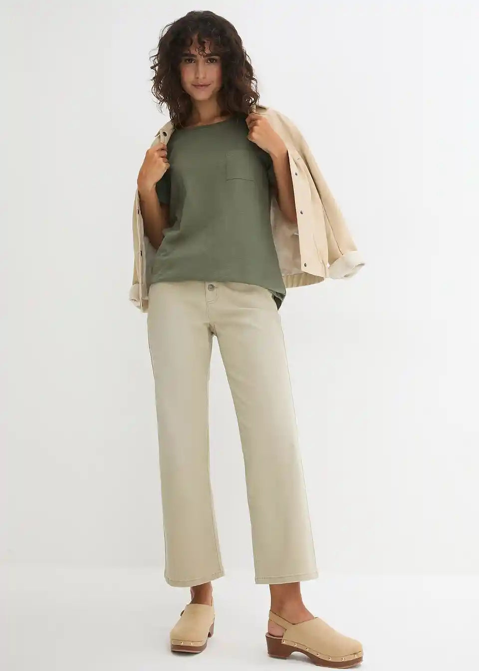 Postavi prijazno T-Shirt iz bombaža z meliranim učinkom z okrasnim prsnim žepom