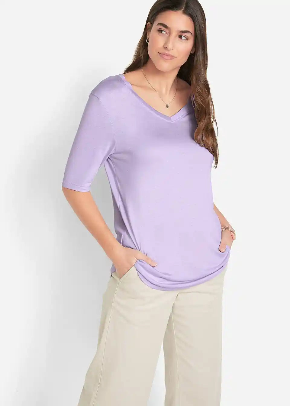 Vsakodnevno kombinirljiva majica z V-izrezom, izdelana iz tekoče in trajnostne viskoze, v praktičnem pakiranju 2 kosa