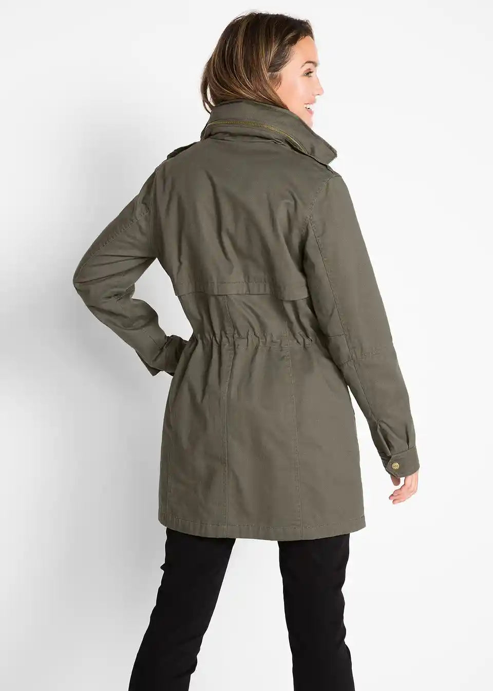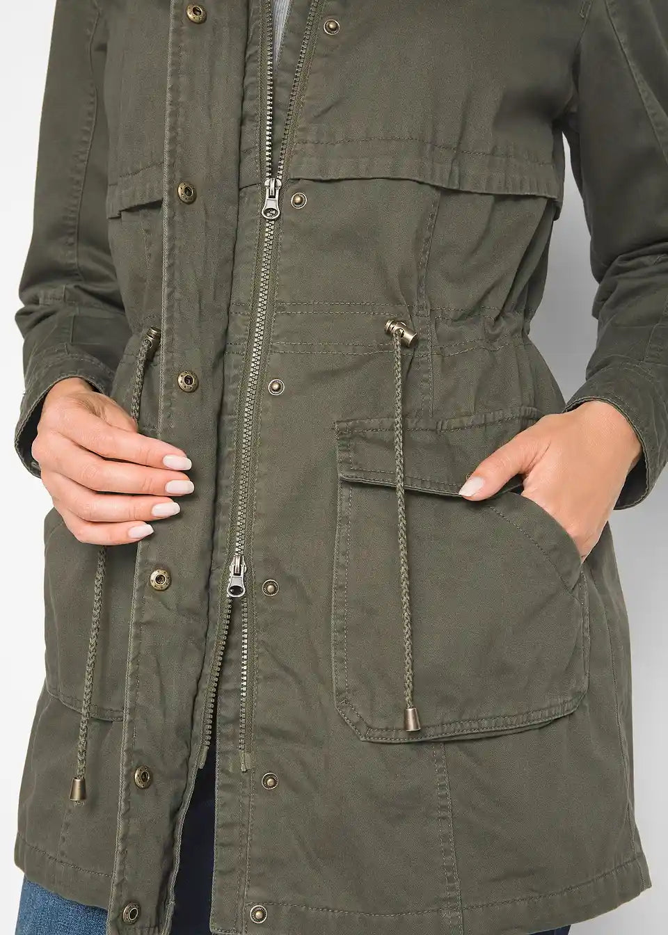 Atraktivna bombažna parka s kapuco in vpeljano vrvico v pasu
