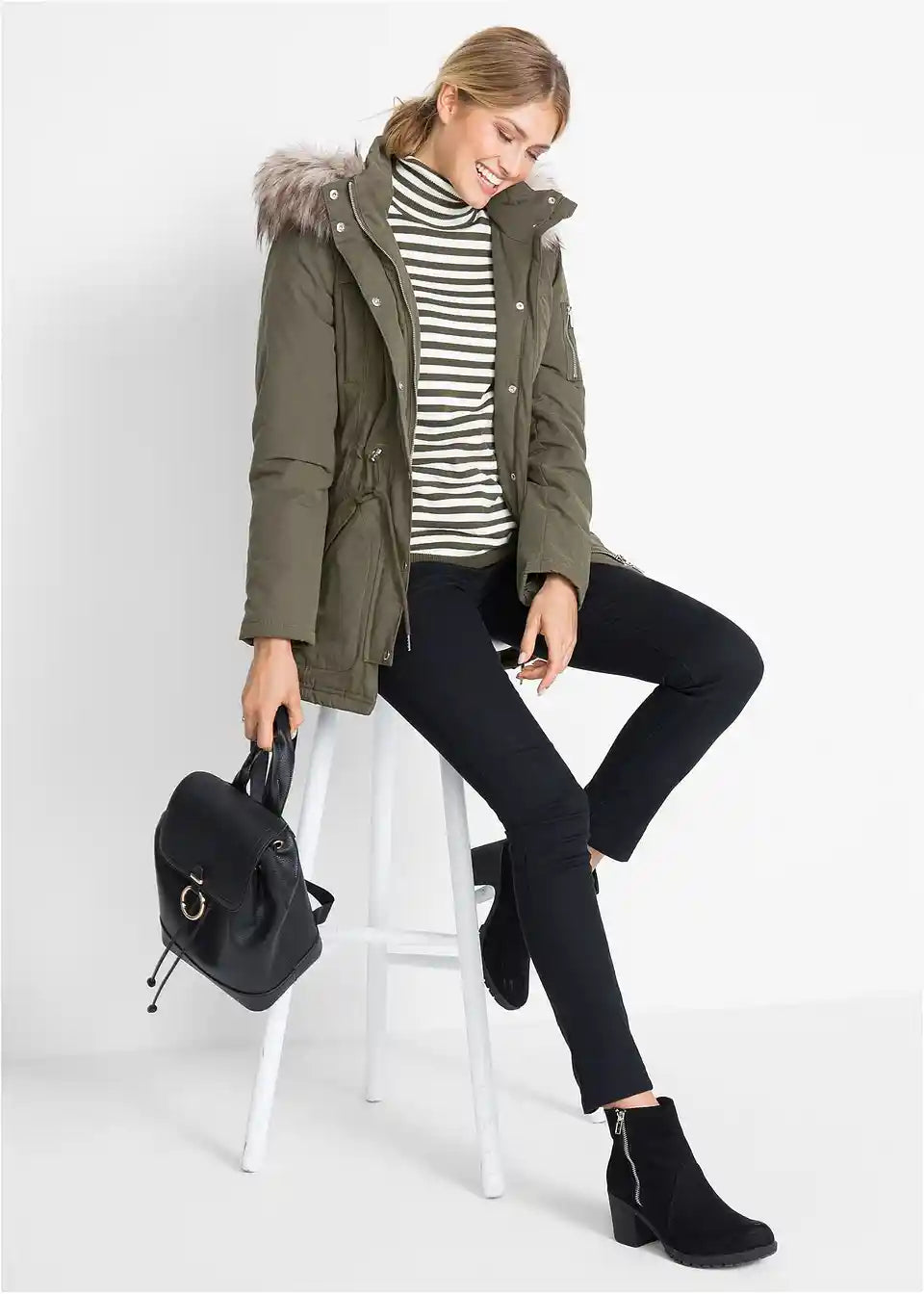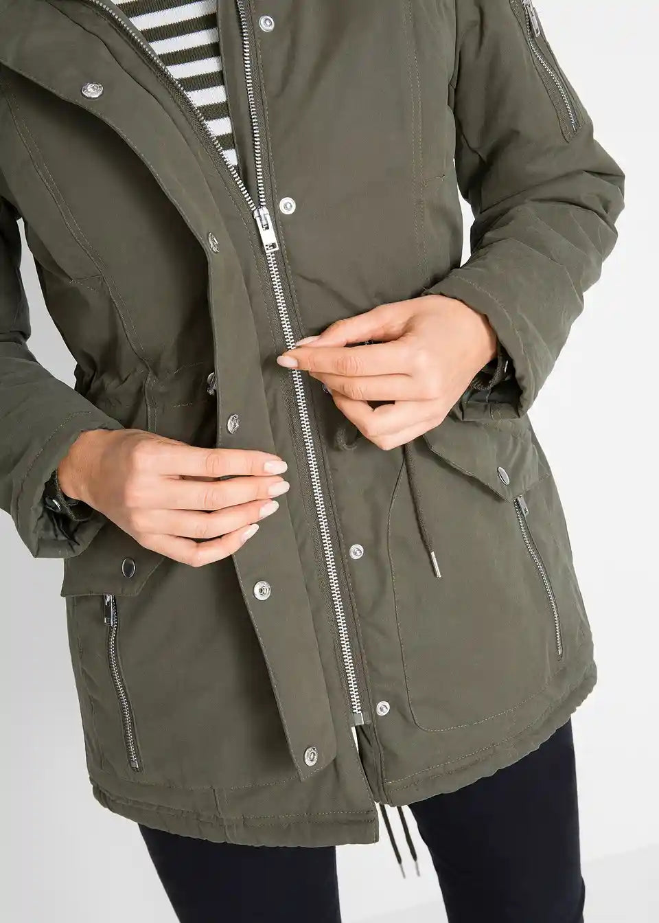 zgornji material: 58% poliester, 42% bombaž, podloga: 100% poliester, notranja podloga: 100% poliester, umetno krzno: 52% akril, 38% modakril, 10% poliester