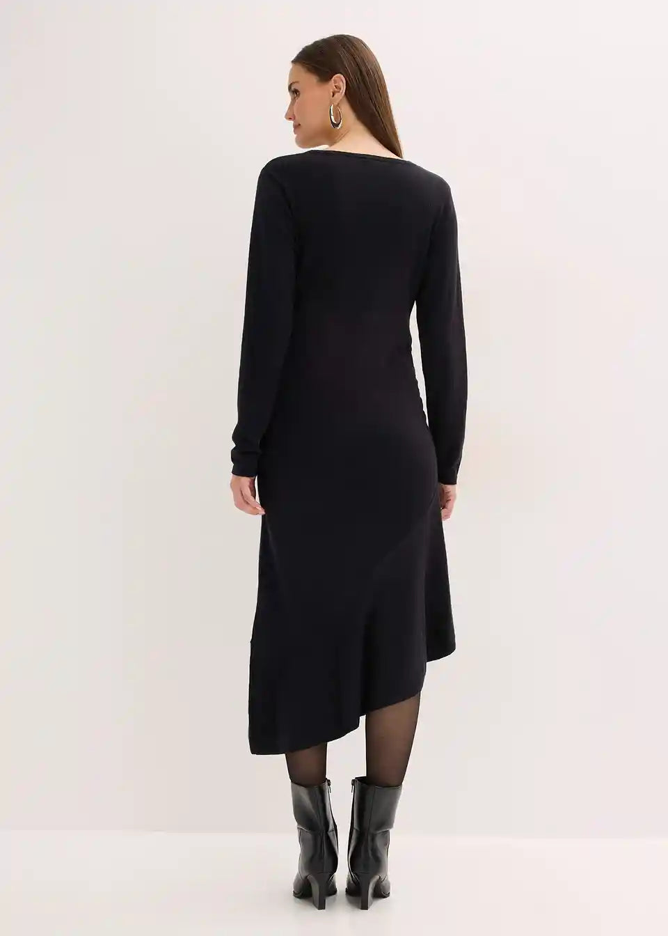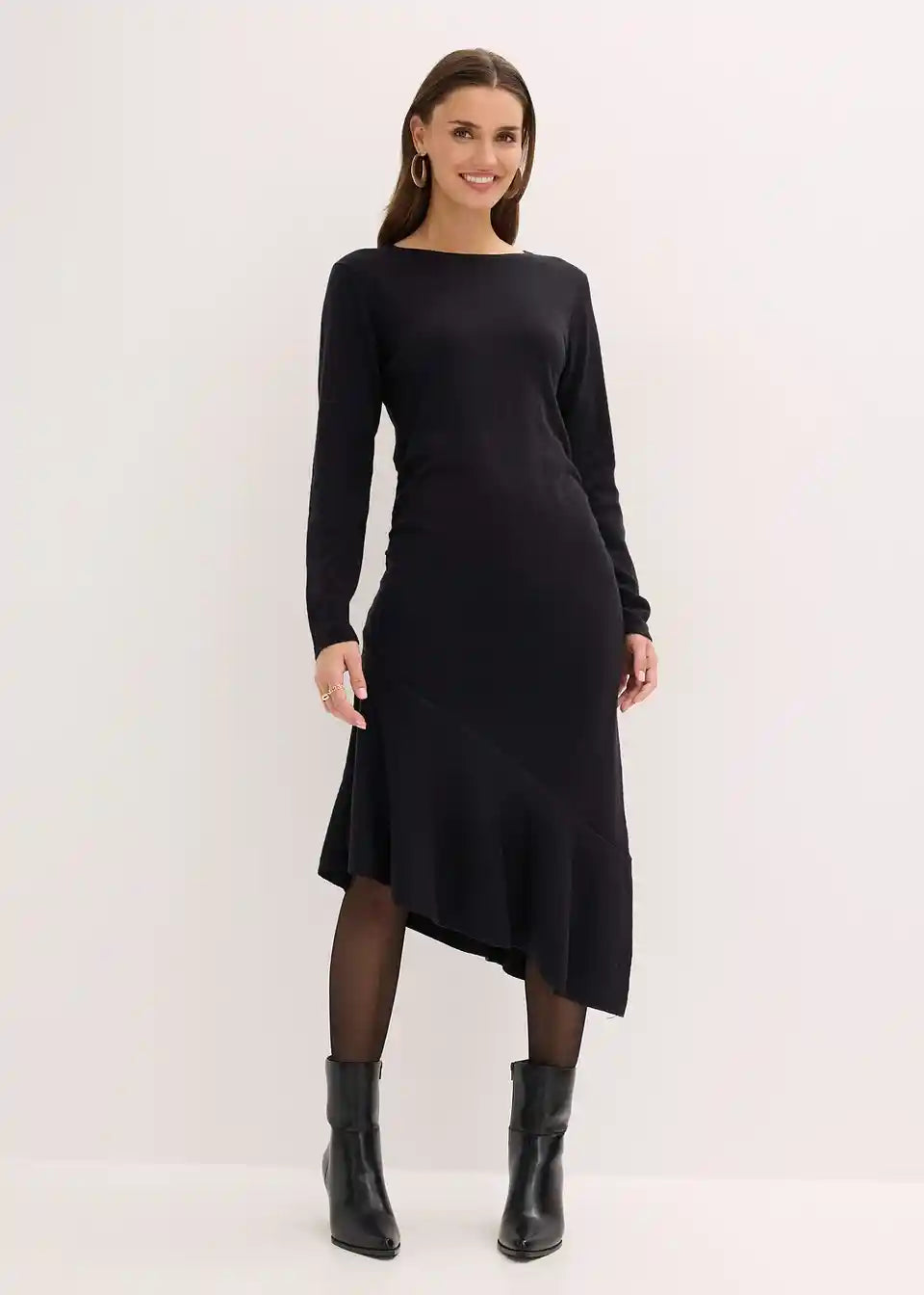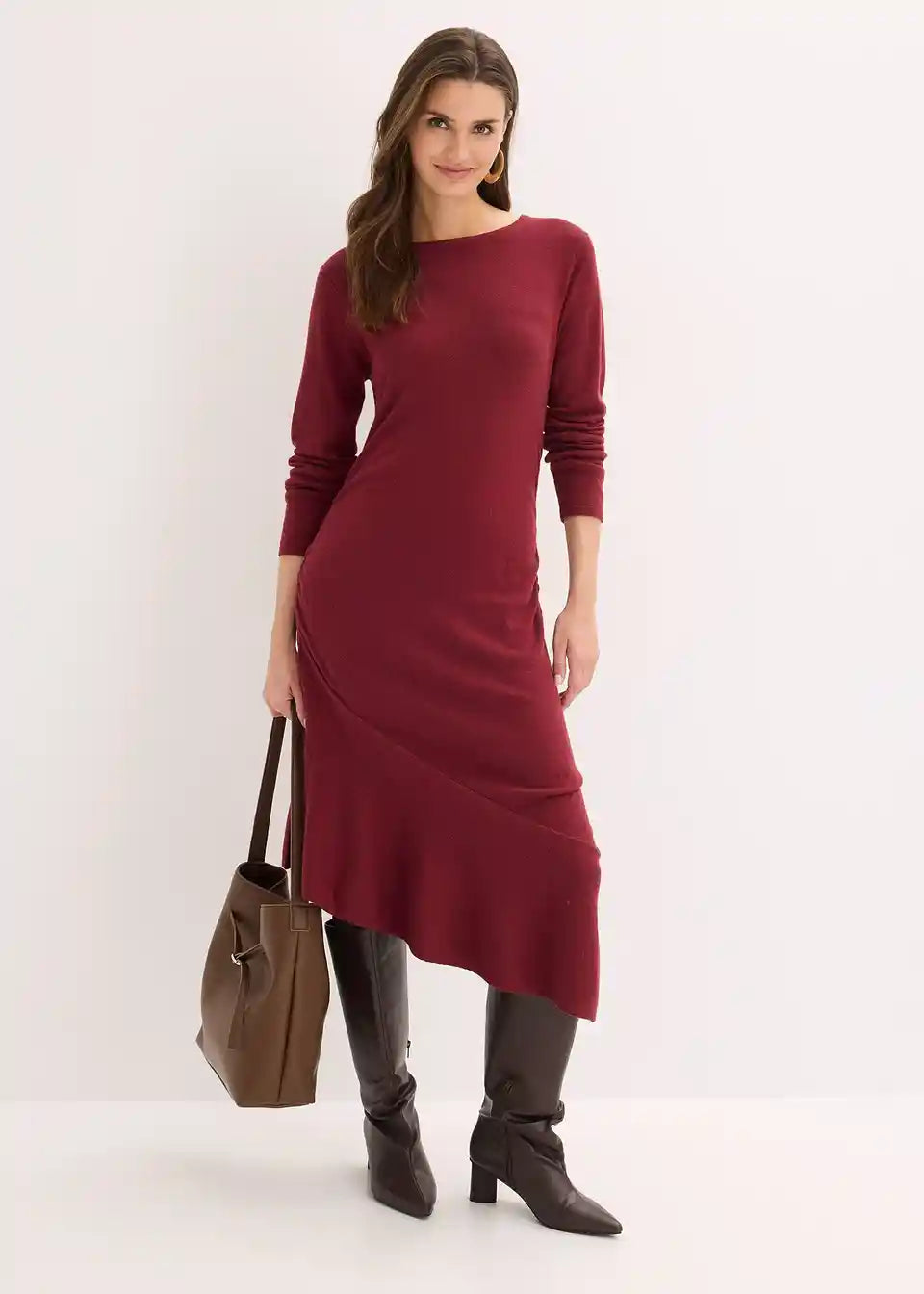 Pletna obleka z asimetričnim spodnjim robom iz bombaža in kašmira