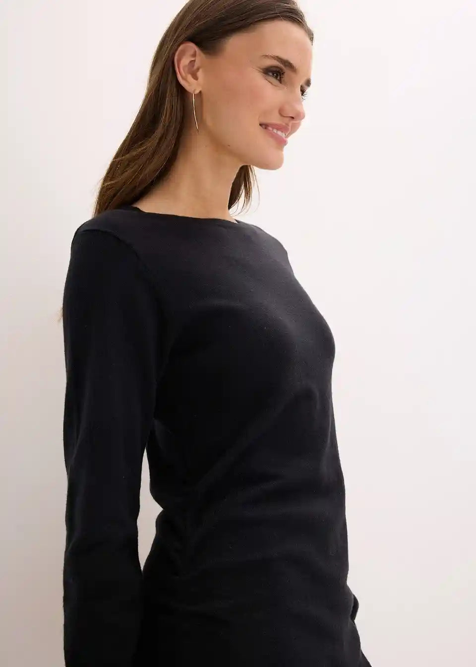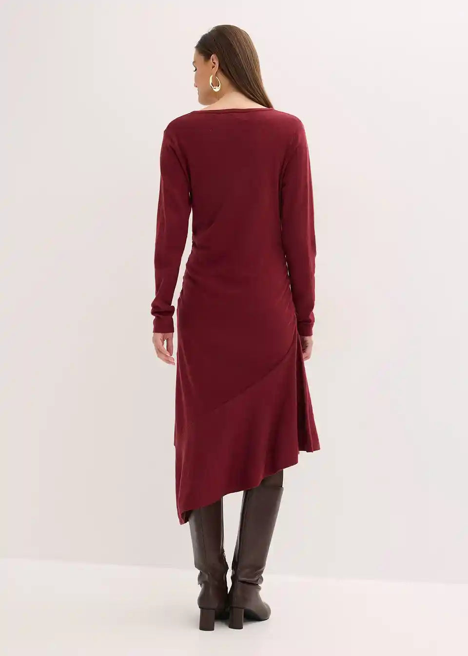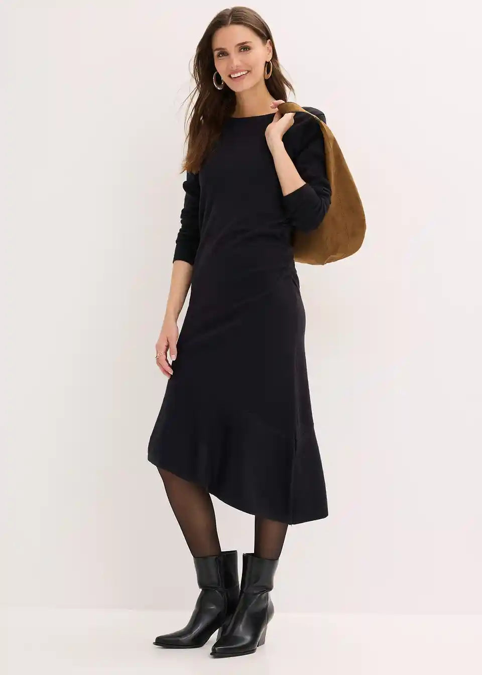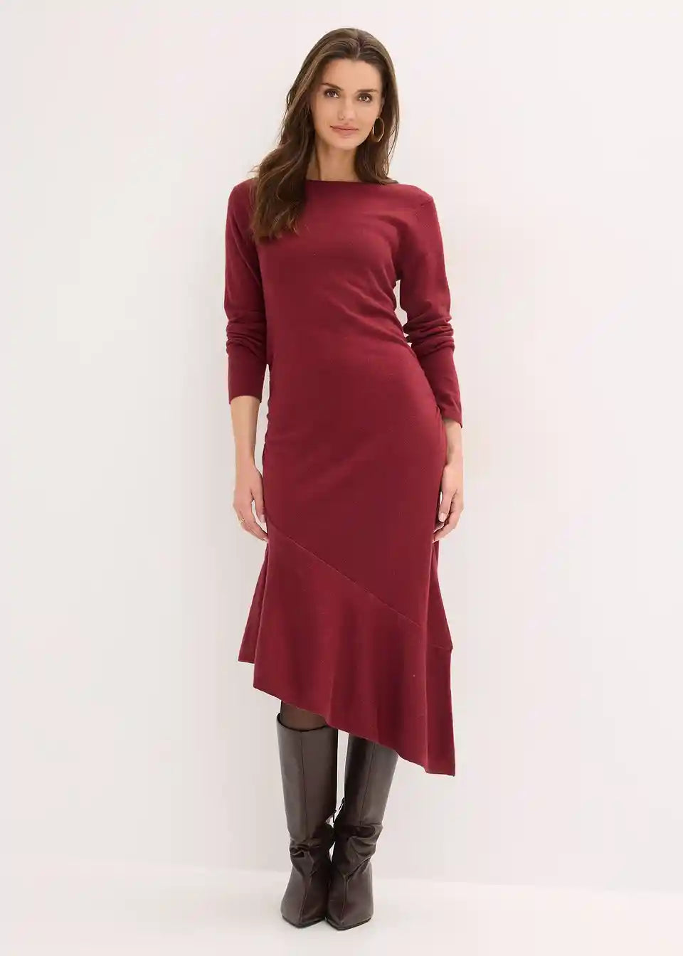 Pletna obleka z asimetričnim spodnjim robom iz bombaža in kašmira