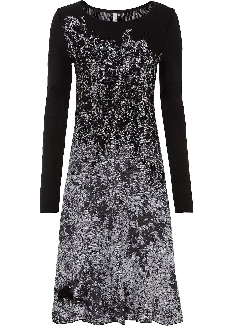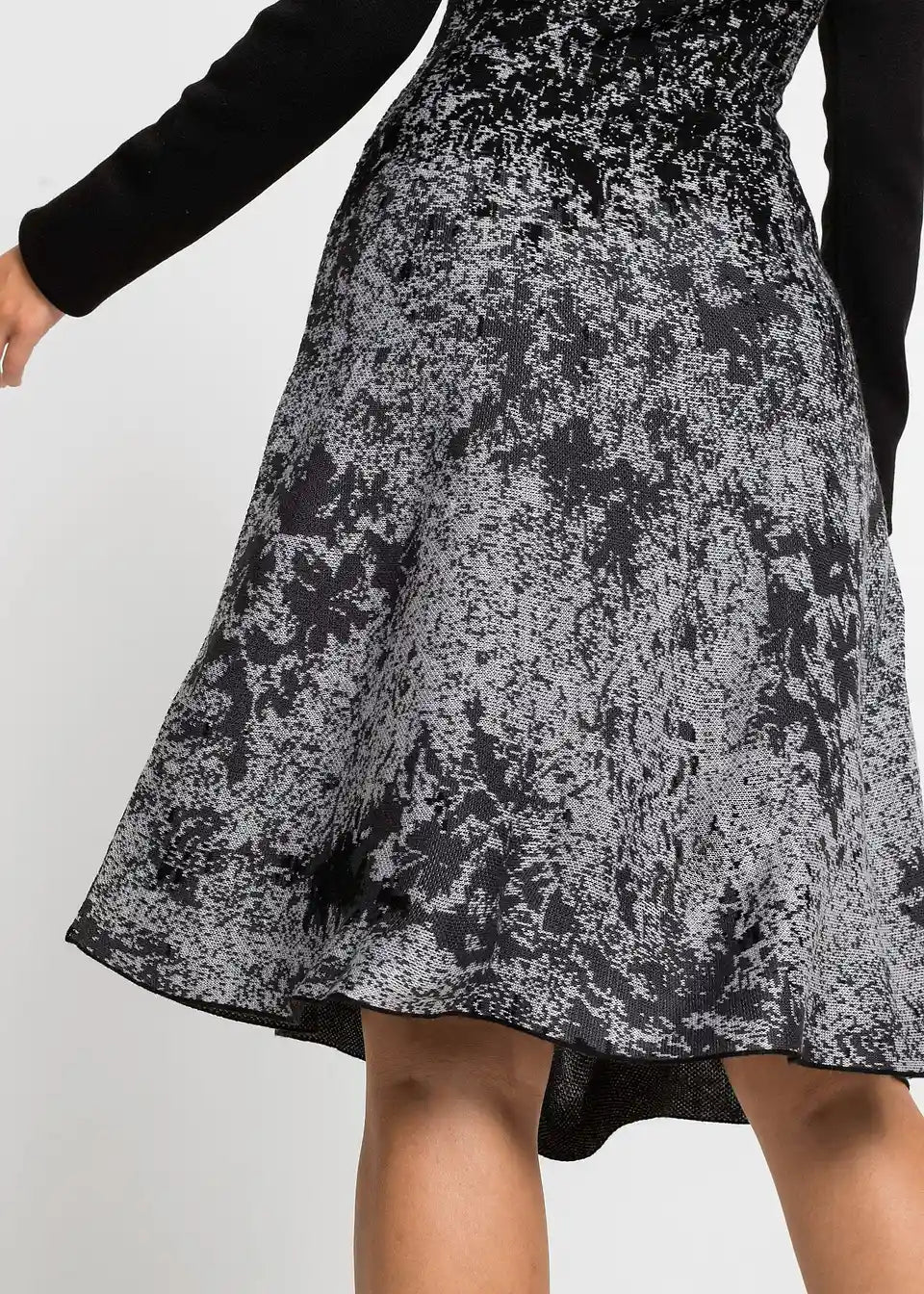 Žakarska pletena obleka z razširjenim spodnjim robom