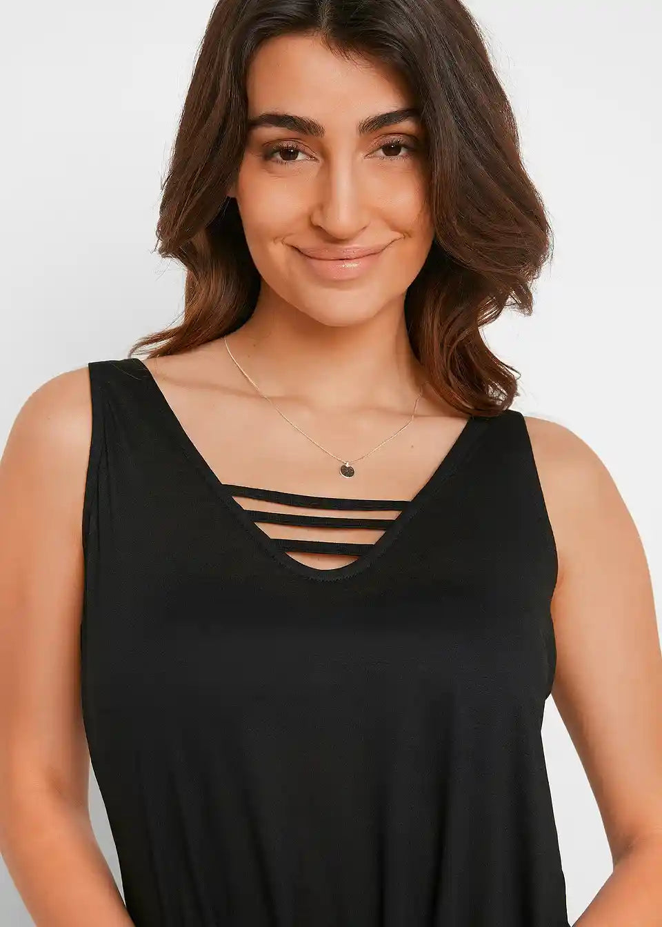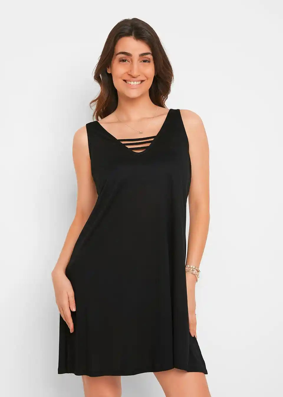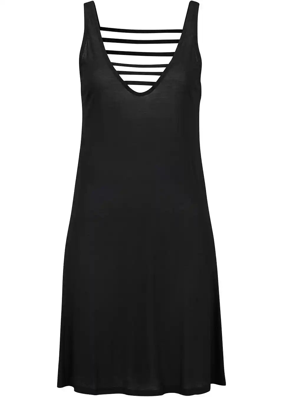 Obleka za plažo brez rokavov z V-izrezom spredaj in zadaj.