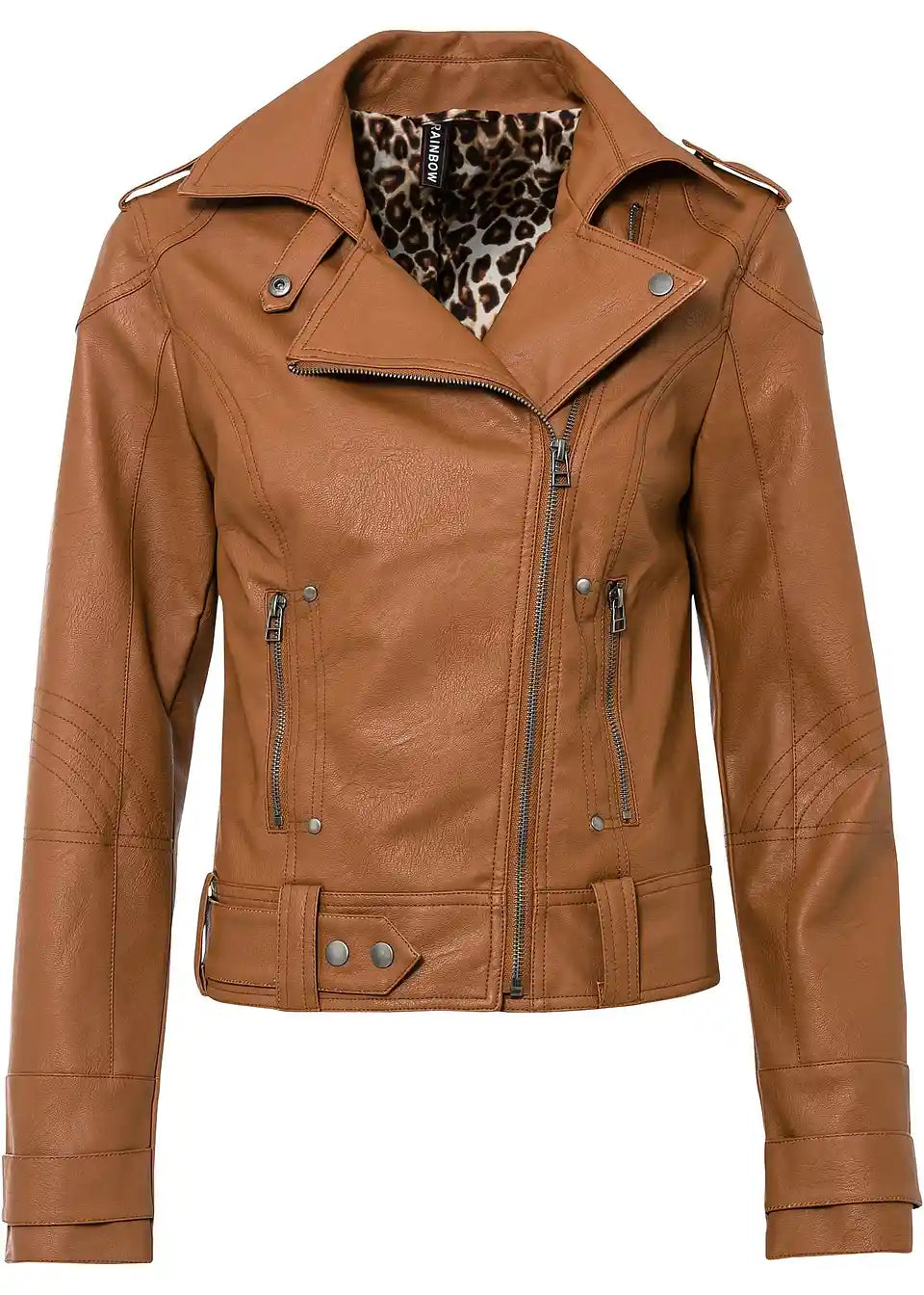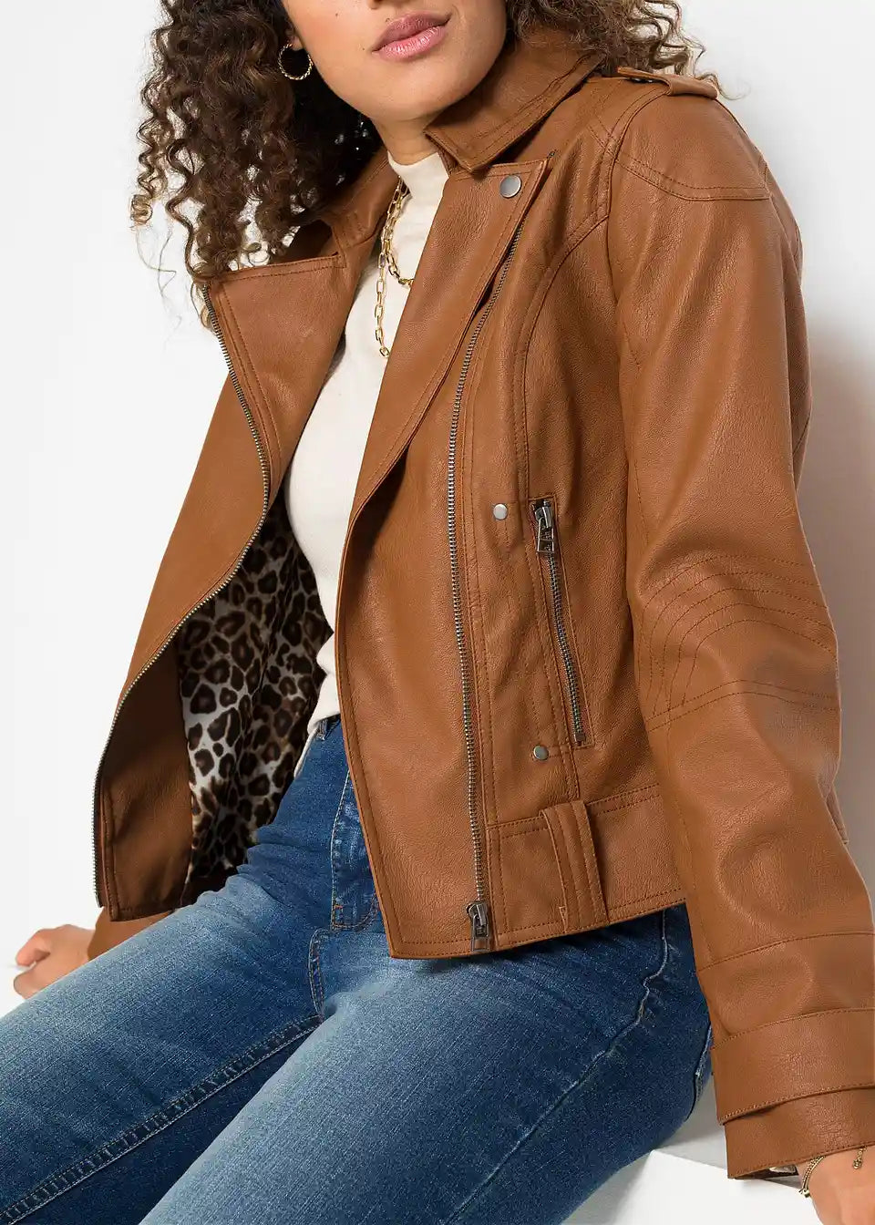 Casual jakna iz umetnega usnja s podlogo v leopardjem vzorcu