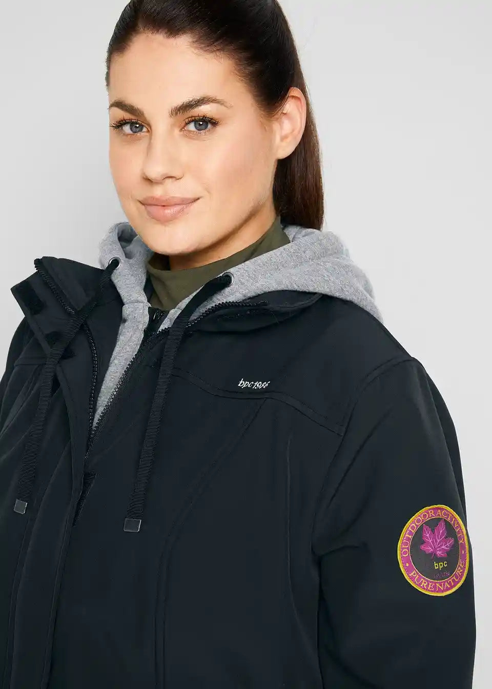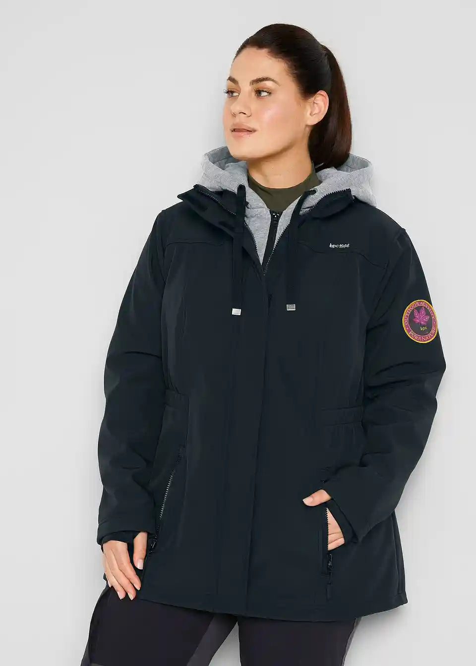 Vse ženske, ki rade preživljajo čas na prostem, bodo to Softshell-dolgo jakno z izgledom 2-v-1 hitro vzljubile. Funkcionalna Softshell-jakna je podložena z vstavkom iz sweat materiala in se zapenja z dvosmerno zadrgo. Mehki sweat material in dodaten elastičen vstavek na višini pasu zagotavljata zelo prijetno nošenje. Softshell-jakna je odporna na veter, vodoodbojna in zračna, notranja stran pa je intenzivno brušena. Praktične podrobnosti, kot so luknje za palce in dva sprednja žepa z zadrgo, naredijo jakno znamke bpc nepogrešljiv kos oblačila za vsak dan.