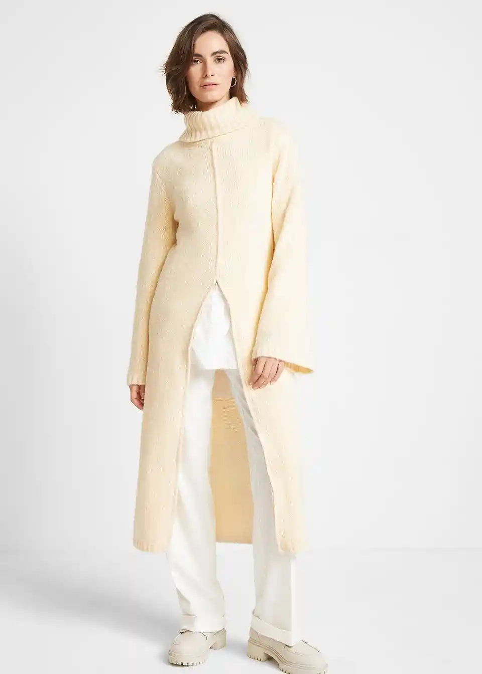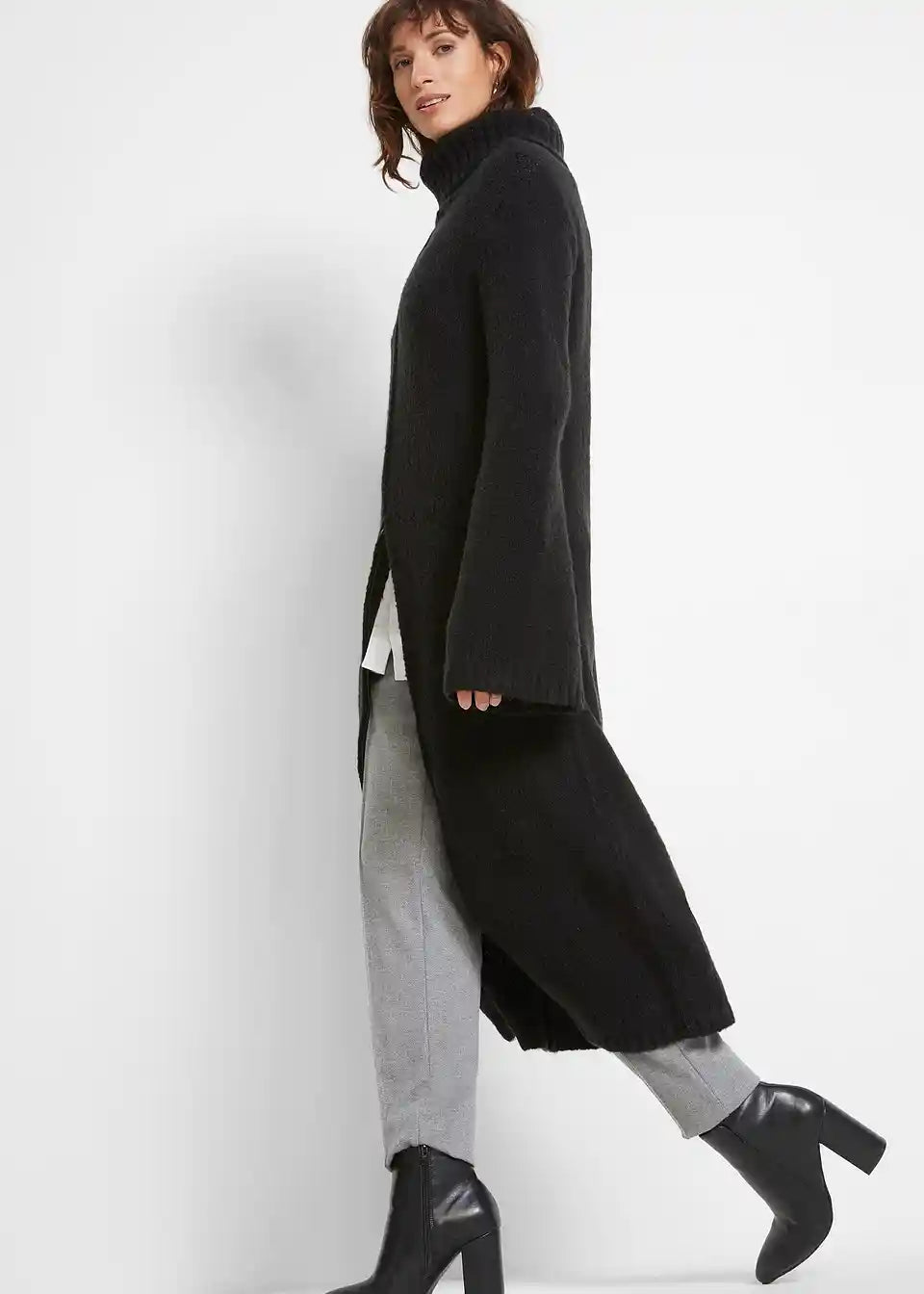 Dolg pulover s puli ovratnikom za nošenje na različne načine