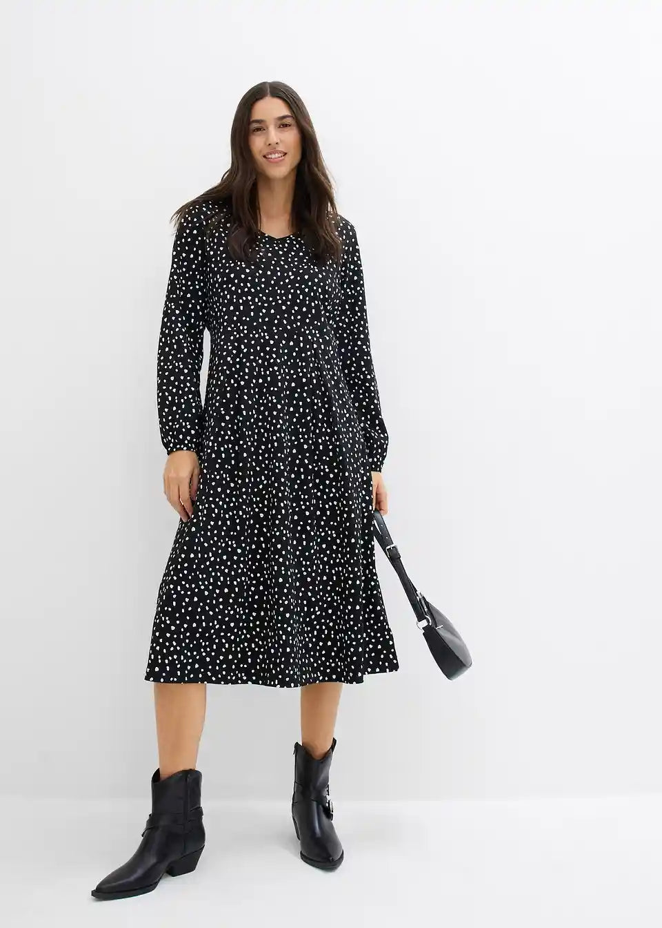 Doseg kolen, jersey obleka z ohlapnim krojem