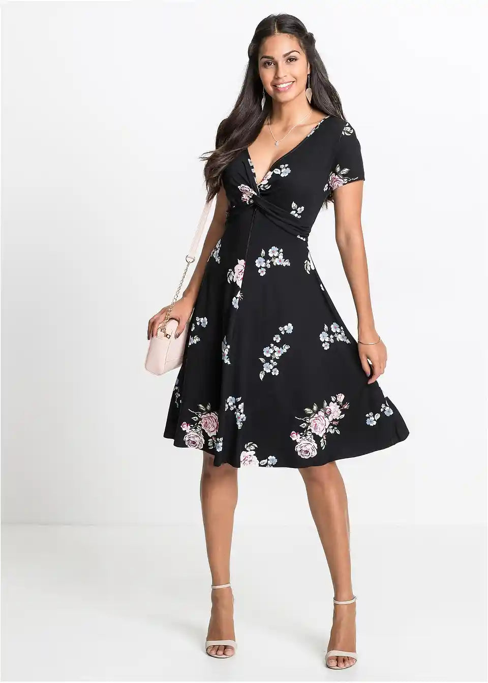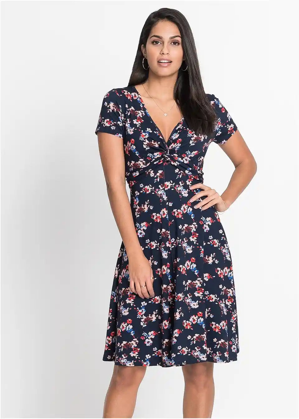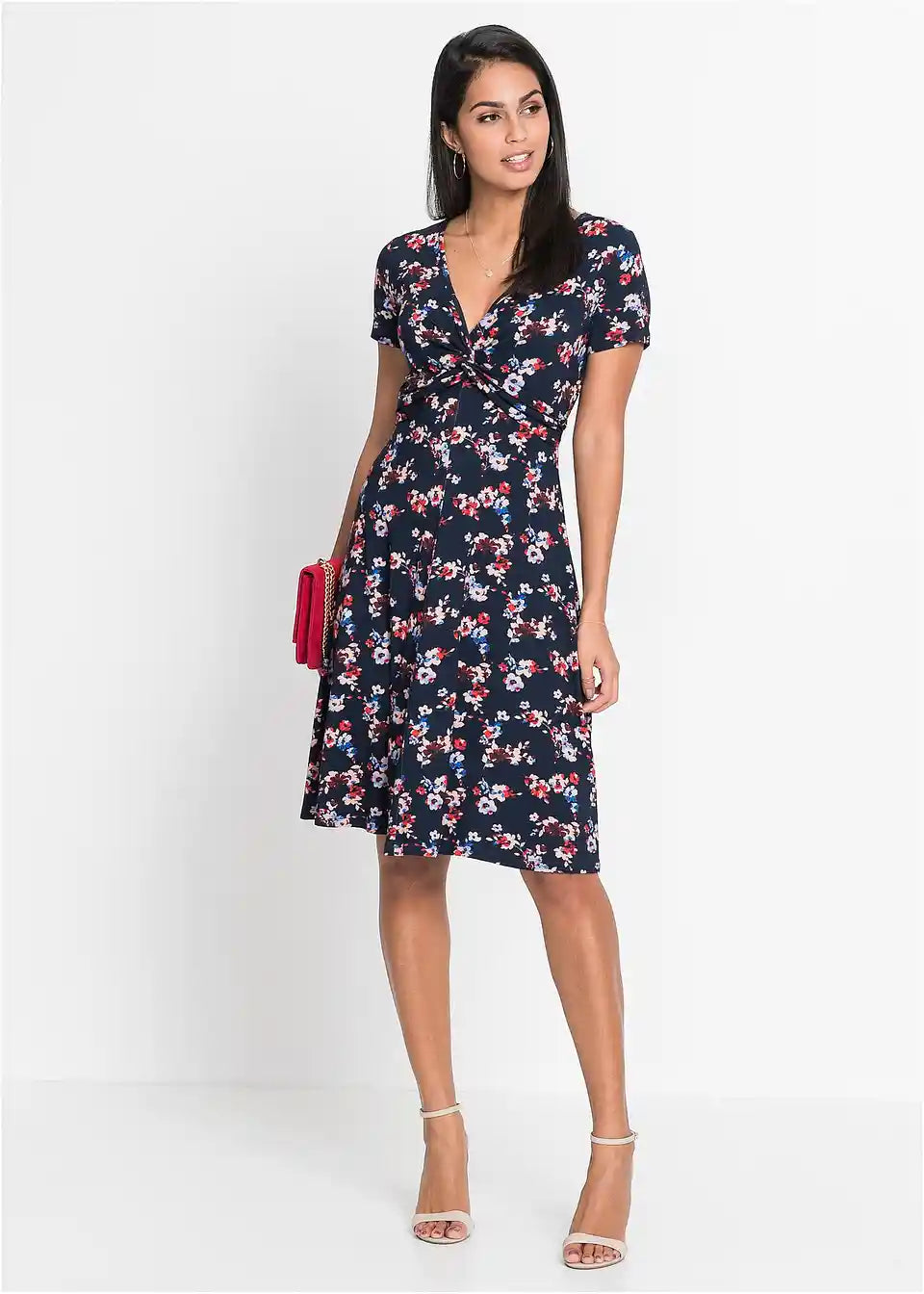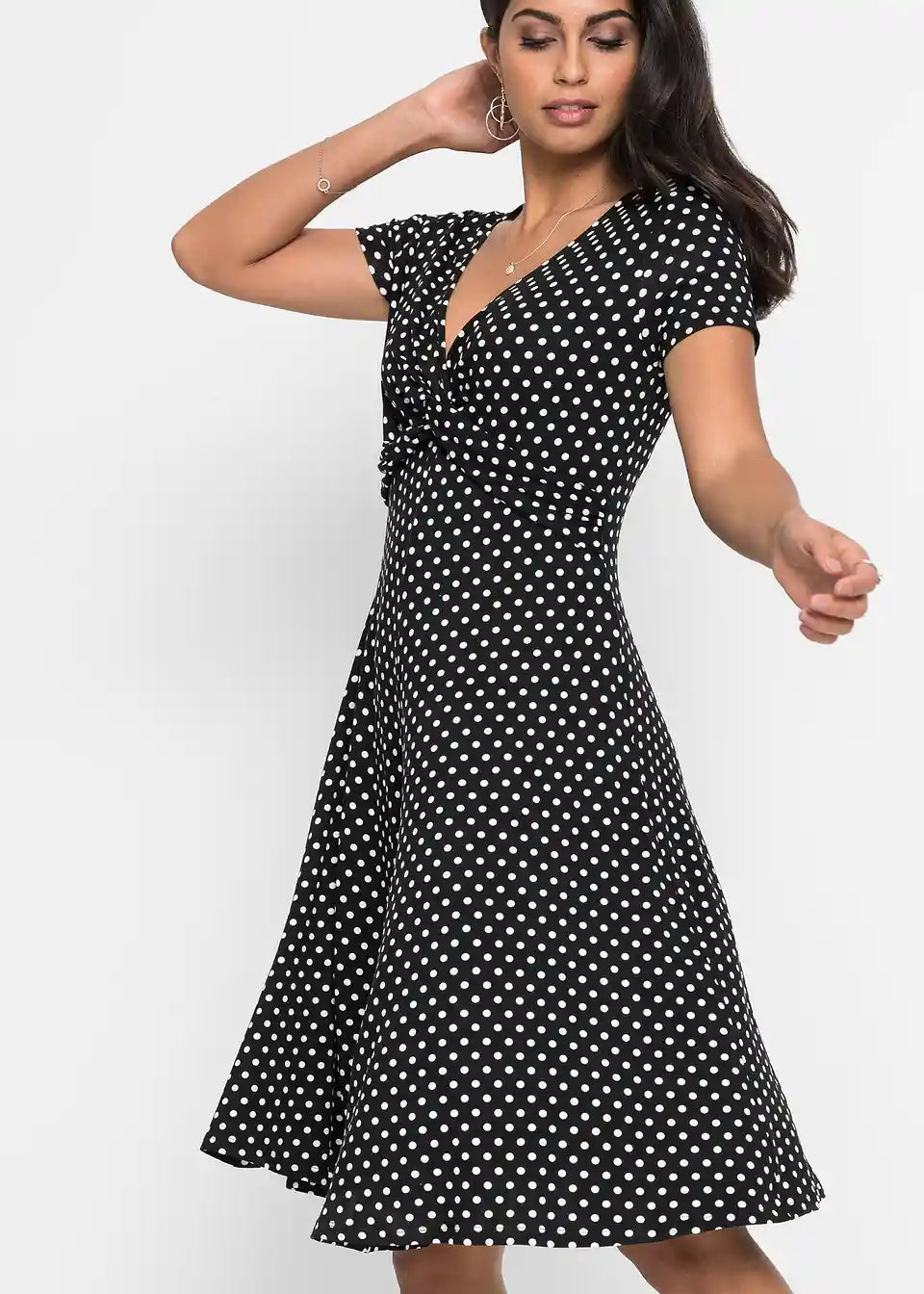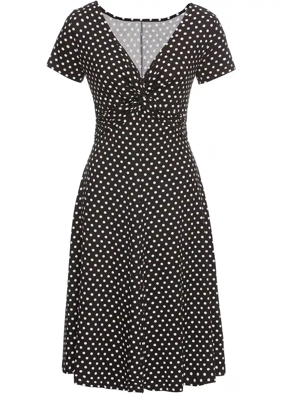 Čudovita obleka s kratkimi rokavi in dekorativnim vozlom