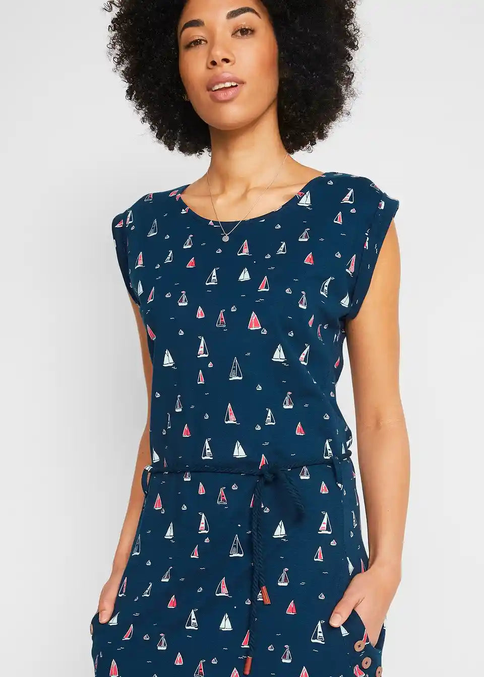Prostočasna obleka iz džersija s stranskimi žepi in vrvico