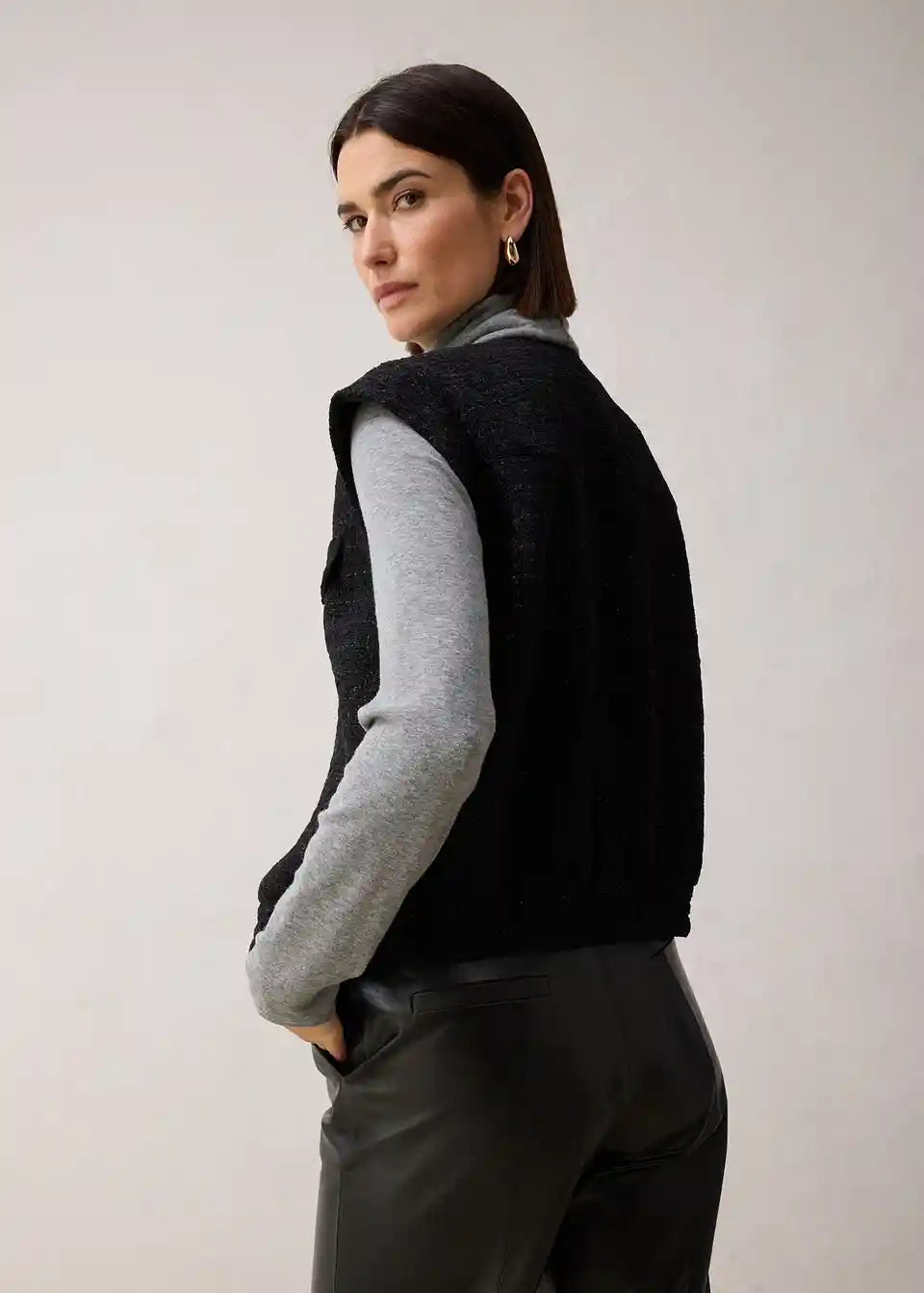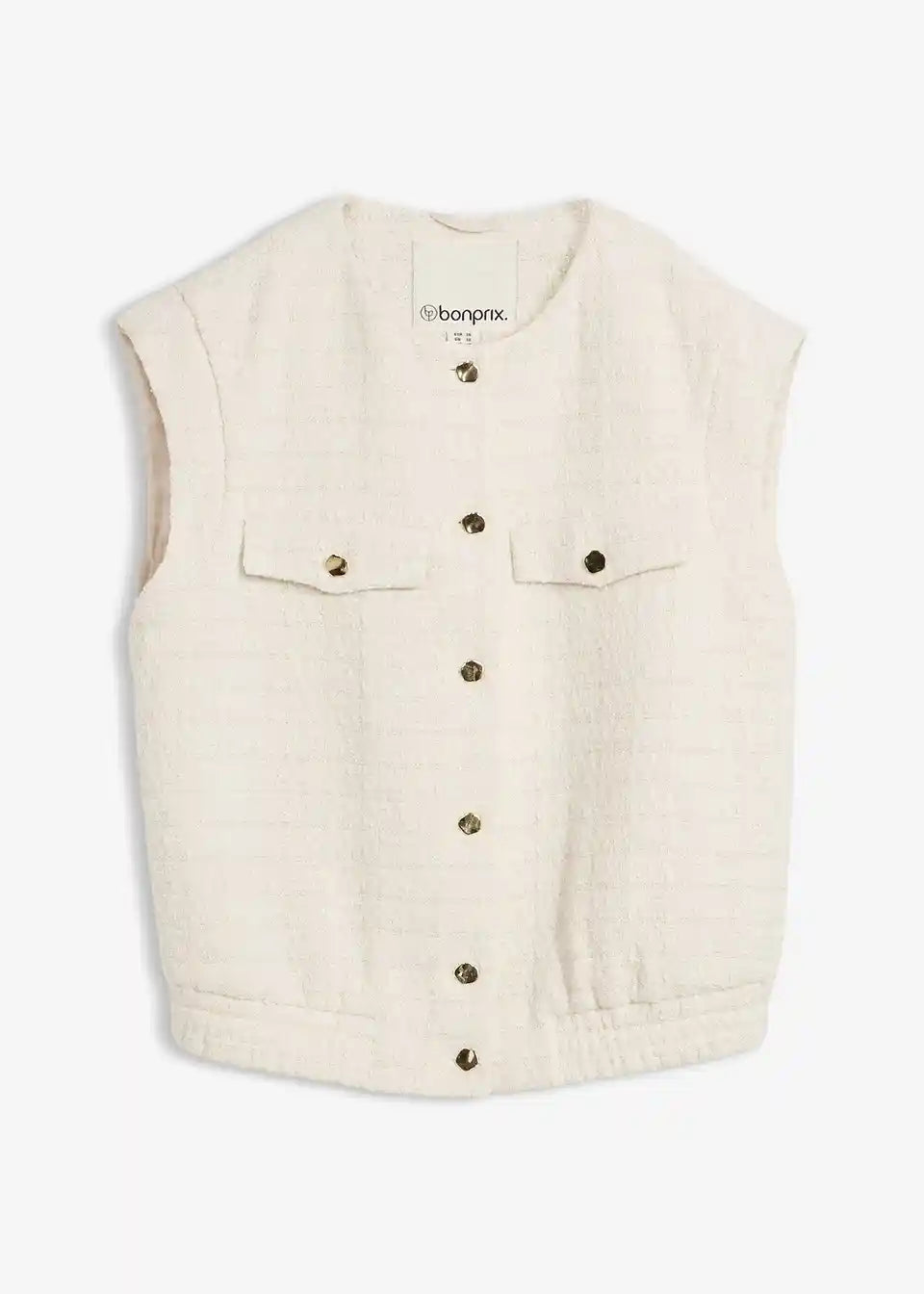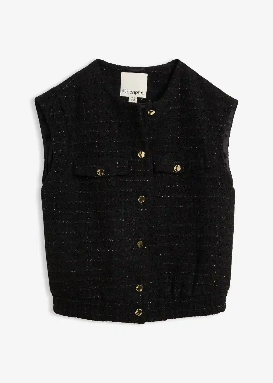 Eleganten blazer-telovnik iz volnene mešanice z okrasnimi zlatimi gumbi