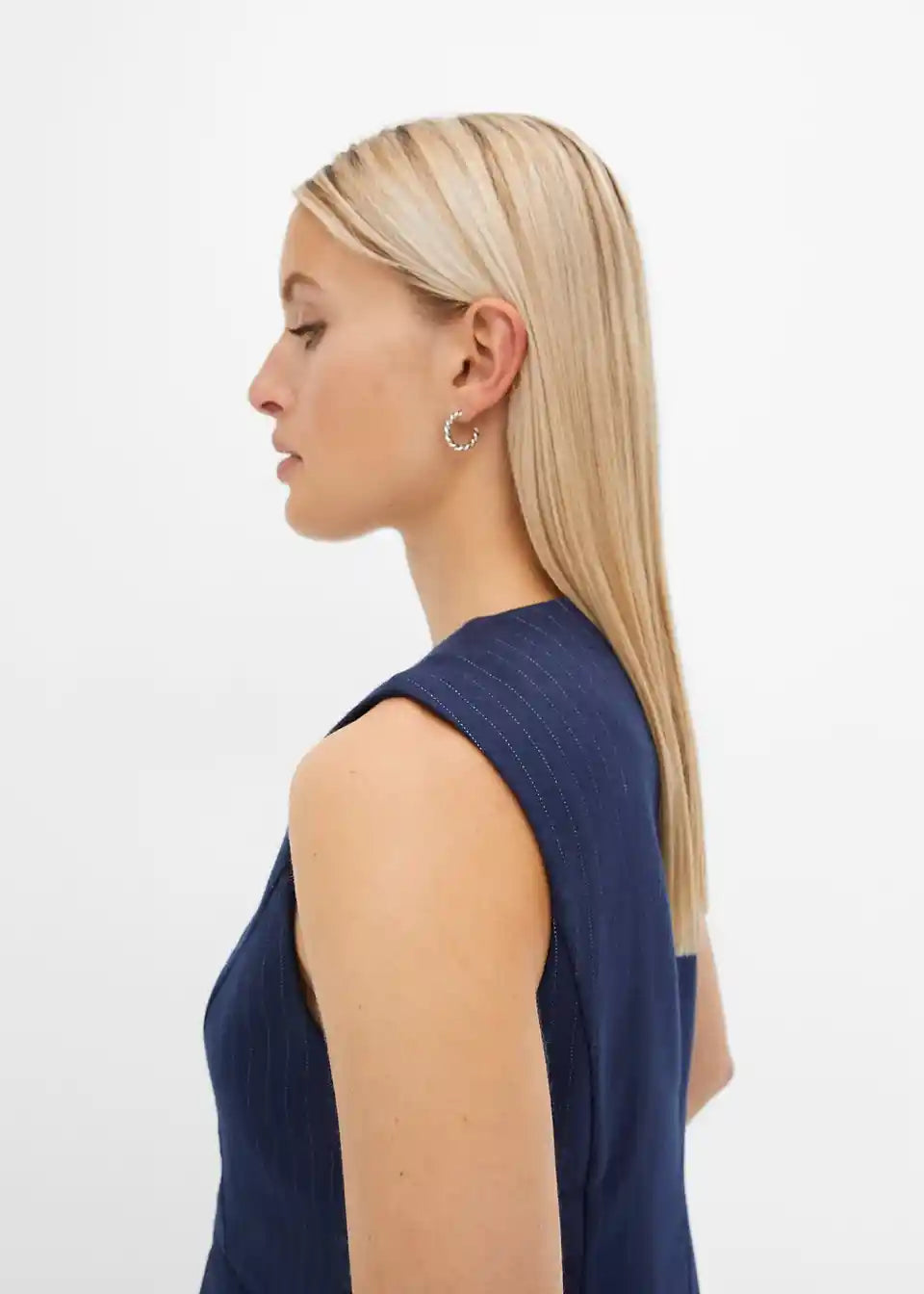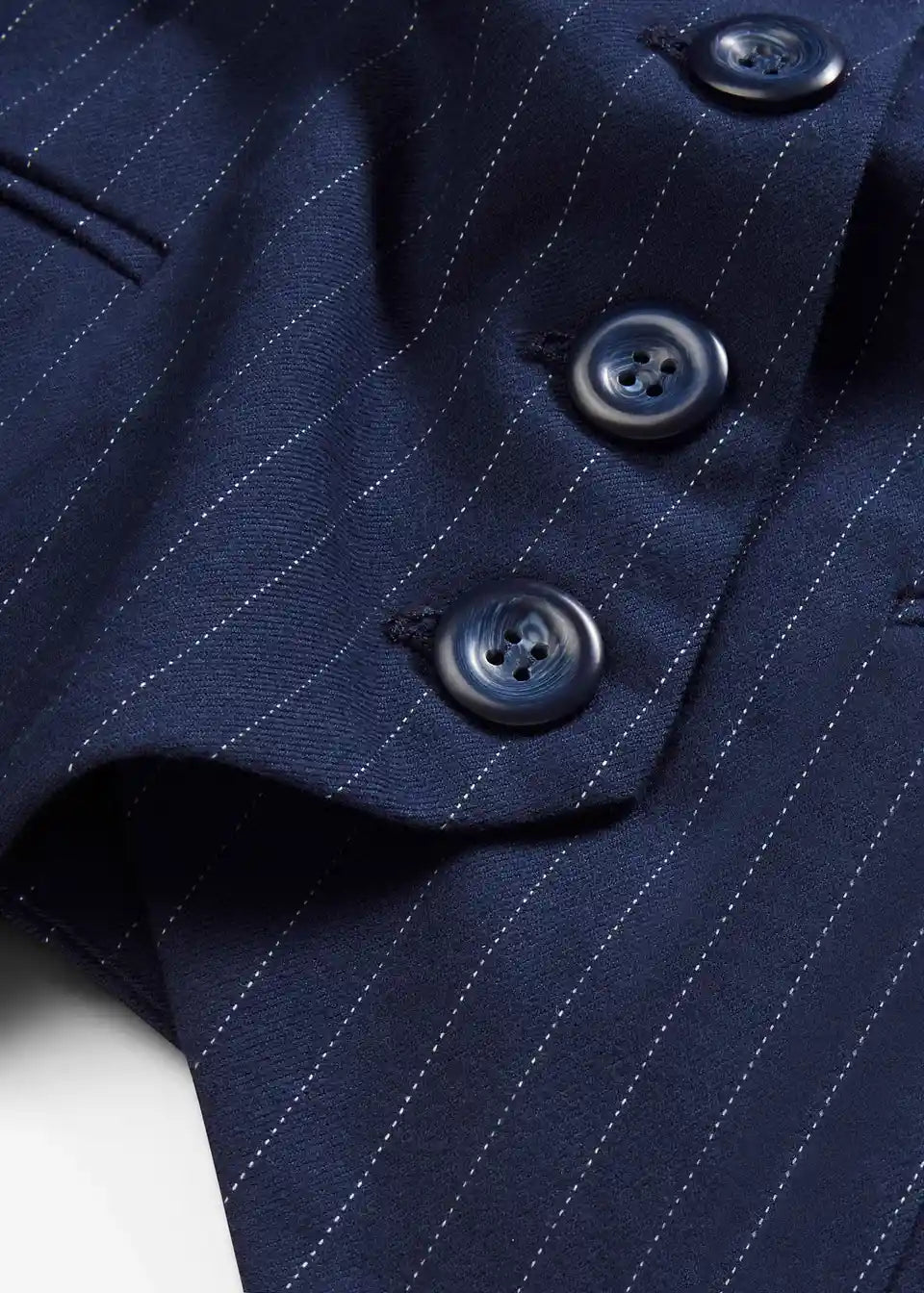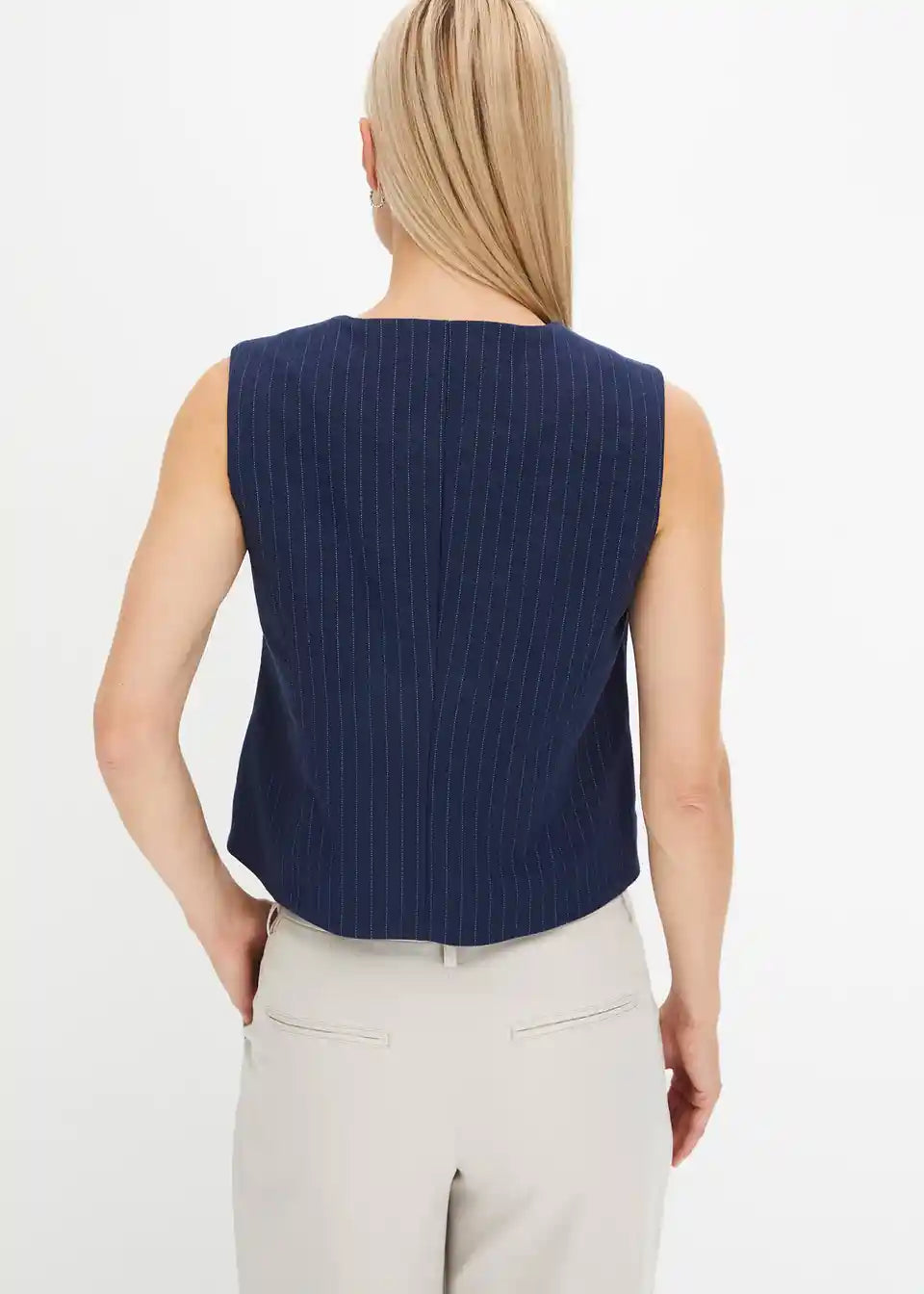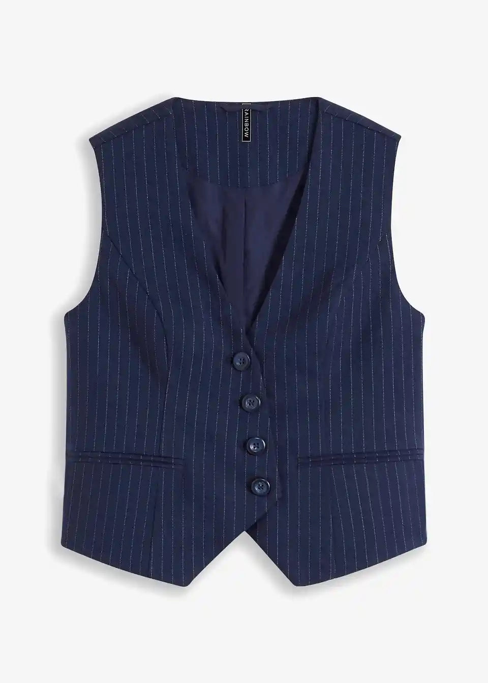 Telovnik z asimetrično letvijo za zapenjanje z gumbi in tankimi črtami