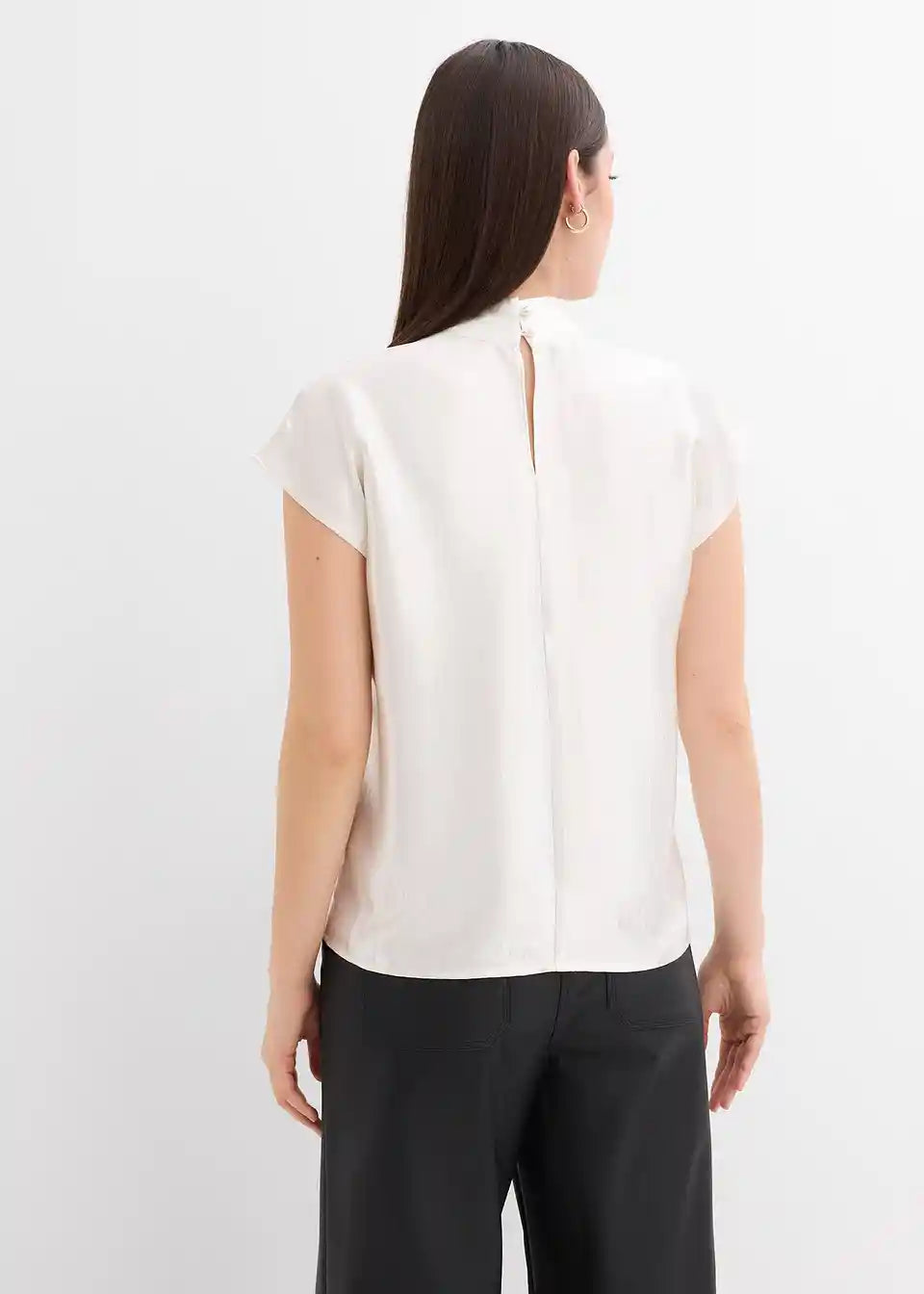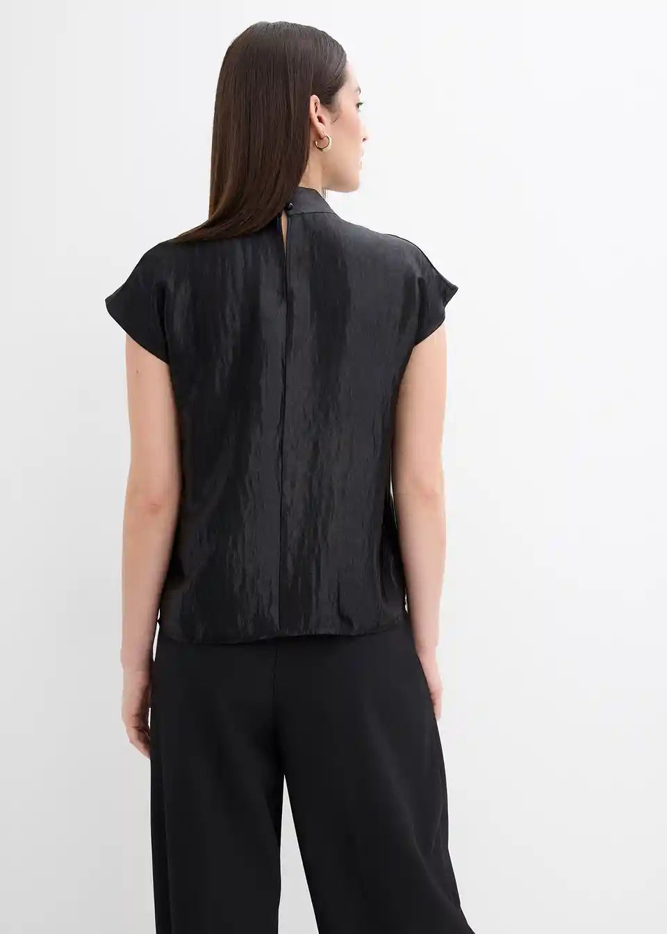 Bluza brez rokavov iz padajočega materiala z zapenjanjem z gumbi zadaj