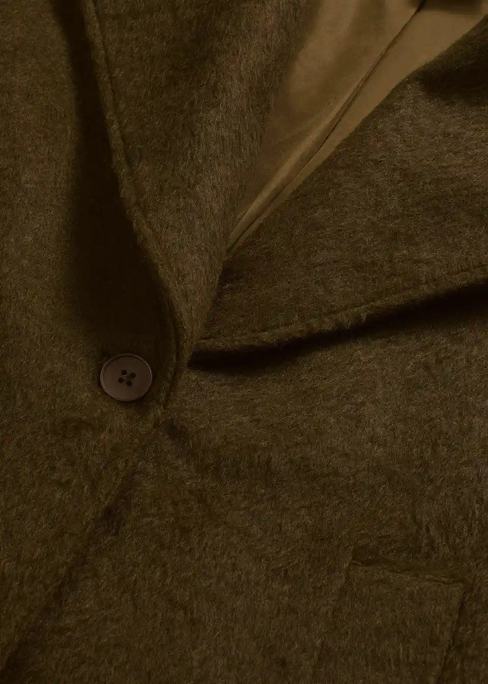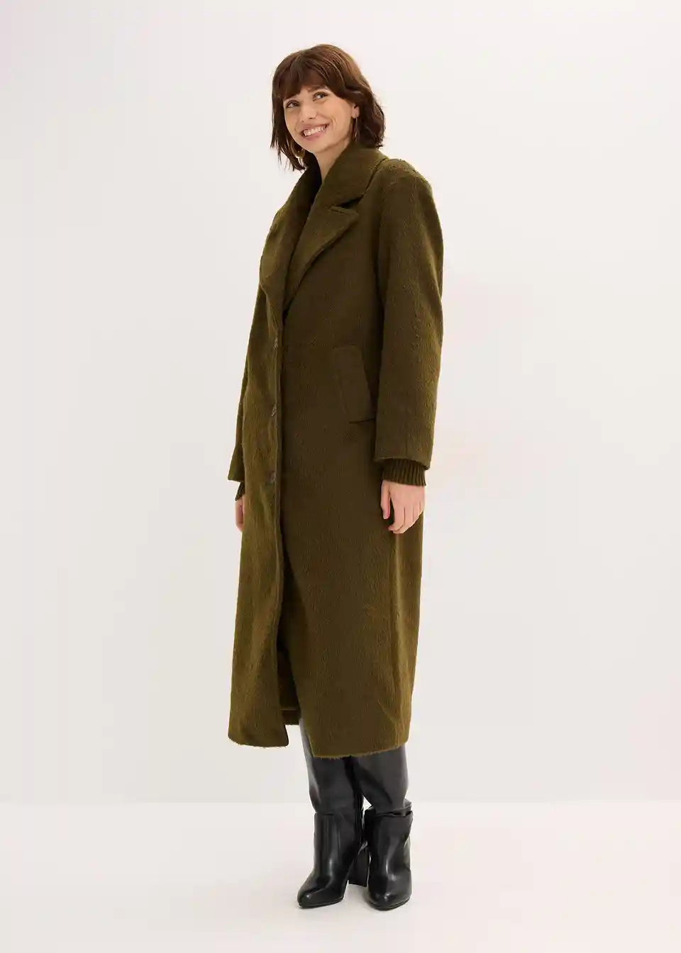 Dolg, enoredni volnen plašč z velikim fazona ovratnikom ter stranskimi žepi z letvico iz klobučevinastega blaga