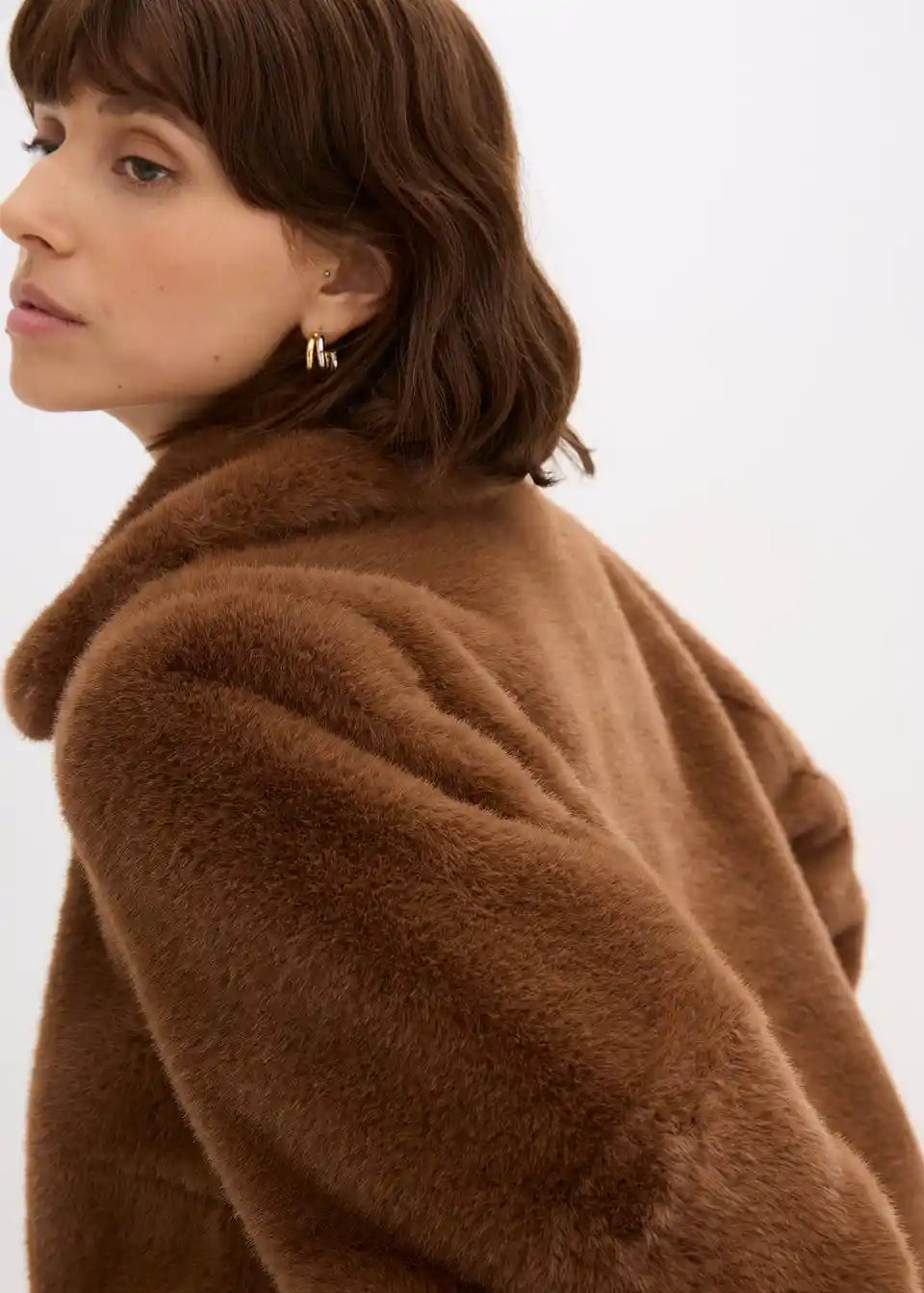 Modni kratka jakna iz umetnega krzna z zadrgo spredaj