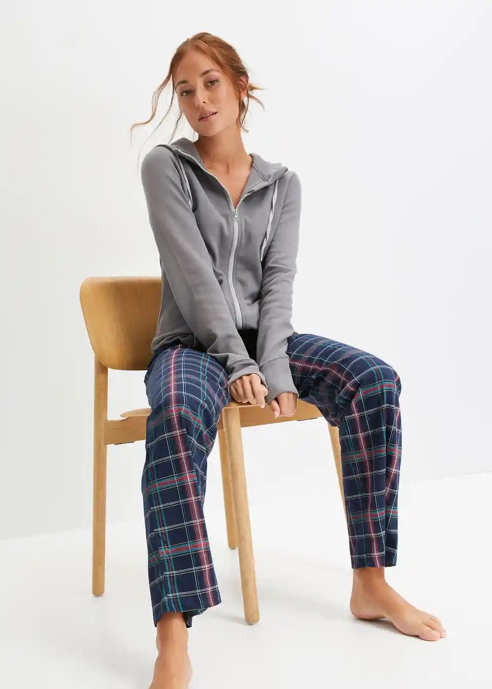 karirane pižame hlače v 3-delnem kompletu iz bombaža
