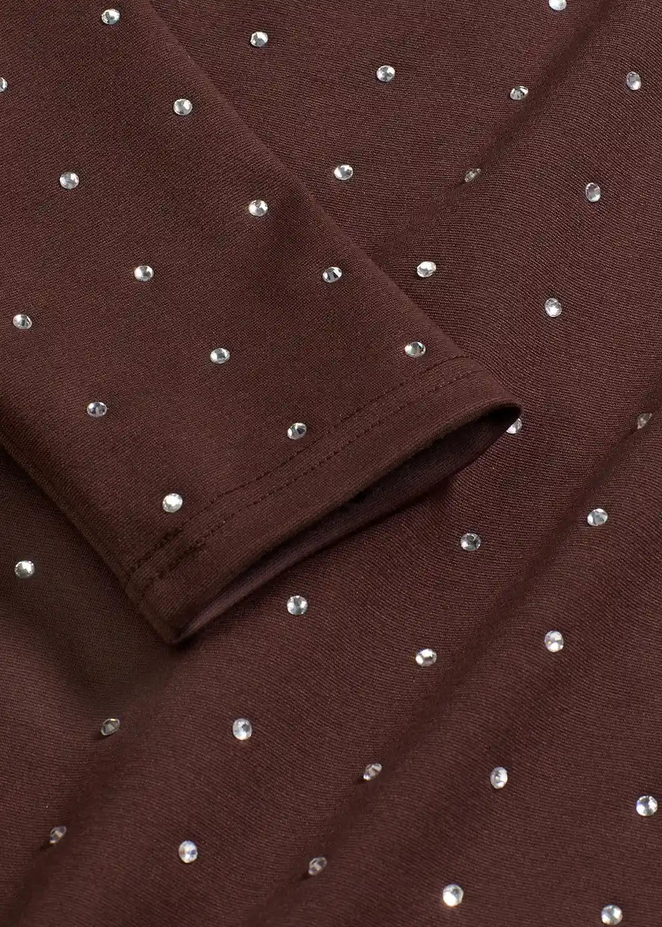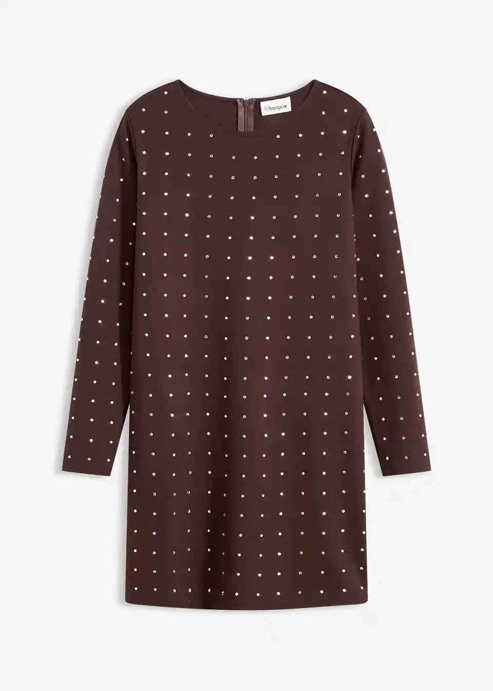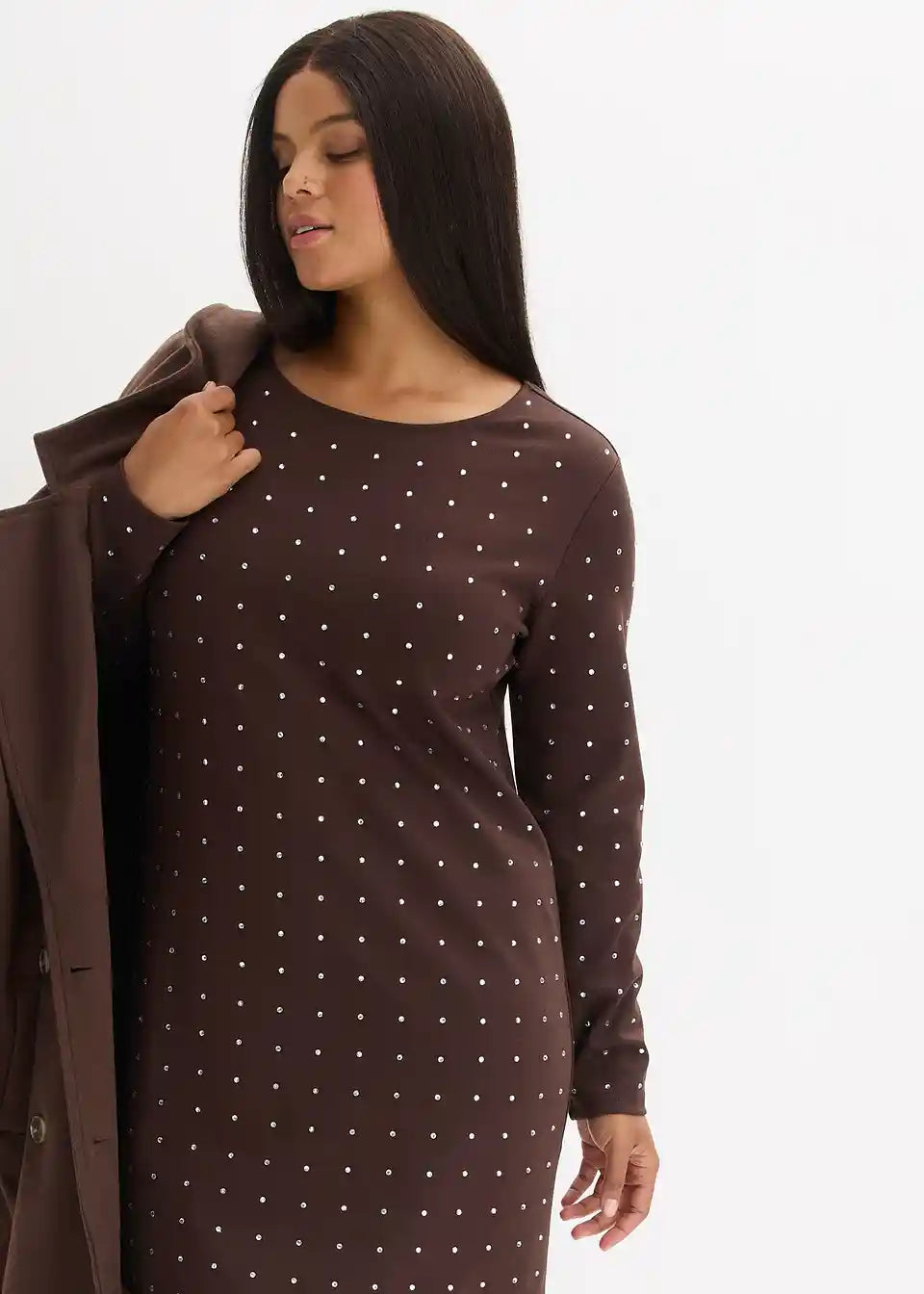 Po telesu poudarjeno krojena obleka iz Punto Di Roma jerseyja z okrasno bleščečo aplikacijo ter z zadrgo zadaj