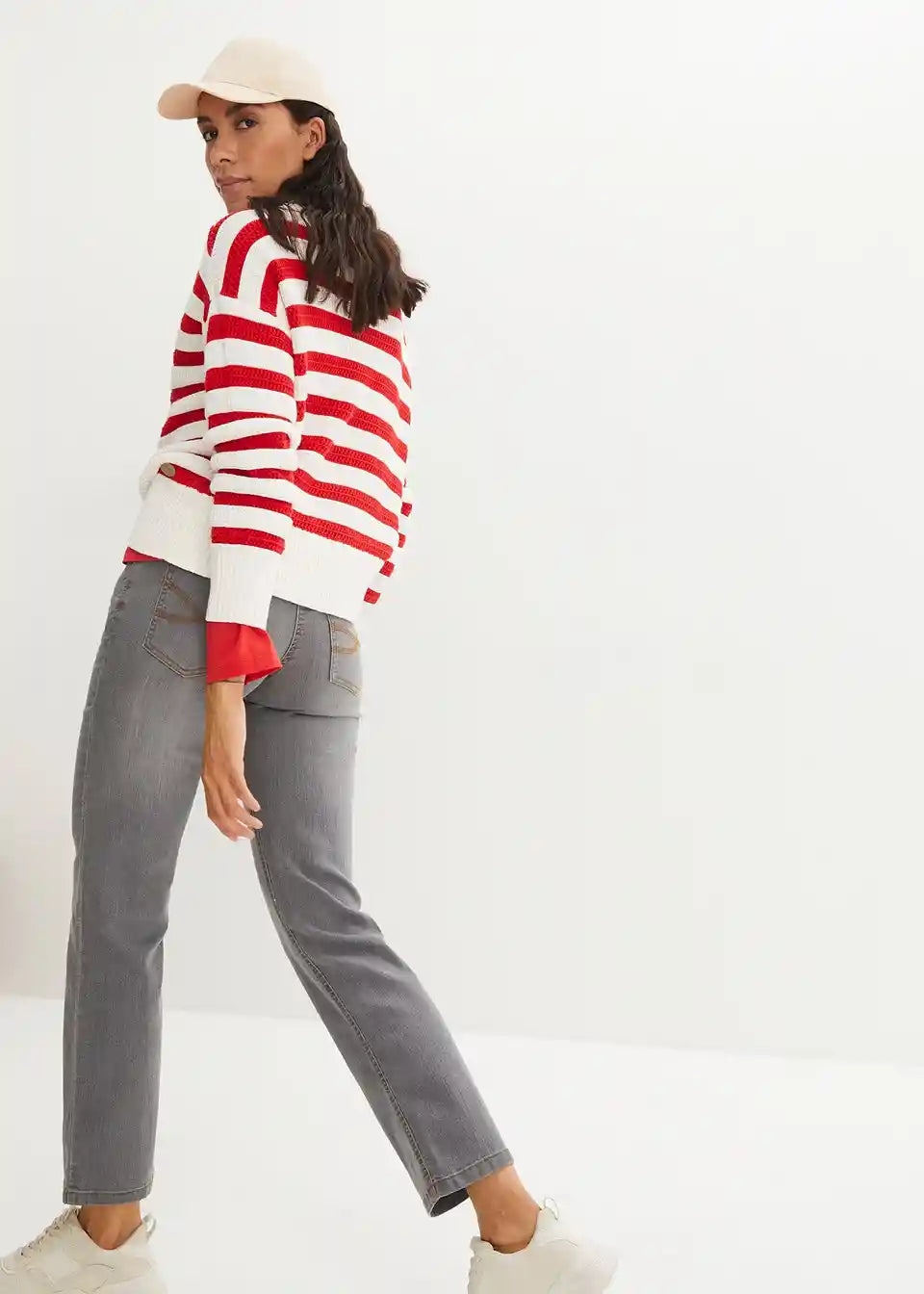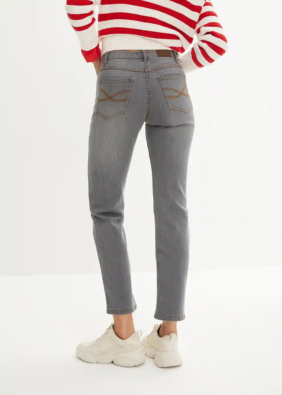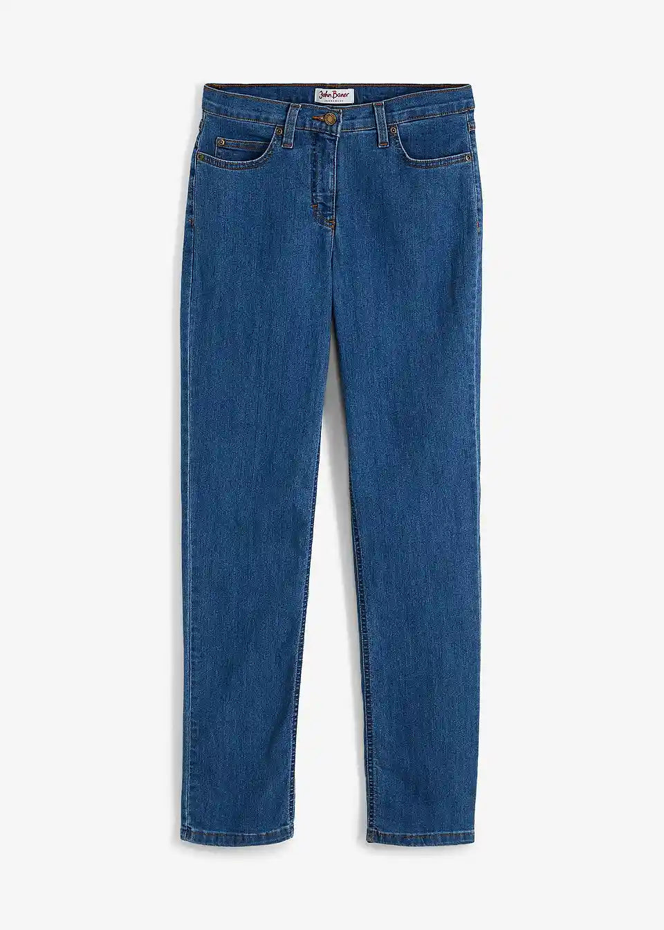 Povprečno ima vsaka ženska v garderobi sedem kavbojk. Z udobnimi raztegljivimi kavbojkami Straight znamke John Baner boste dobili vsestranski model za vsak dan. Klasično krojene kavbojke se predstavljajo v značilni obliki 5 žepov, z udobnim visokim pasom in normalno širino stegen. Model je na voljo v treh dolžinah. Ne glede na to, ali jih kombinirate s svojimi najljubšimi petami in enobarvno majico z dolgimi rokavi ali pa jih nosite z rahlo padajočo cvetlično bluzo in sandali: te kavbojke so vedno dobra izbira.