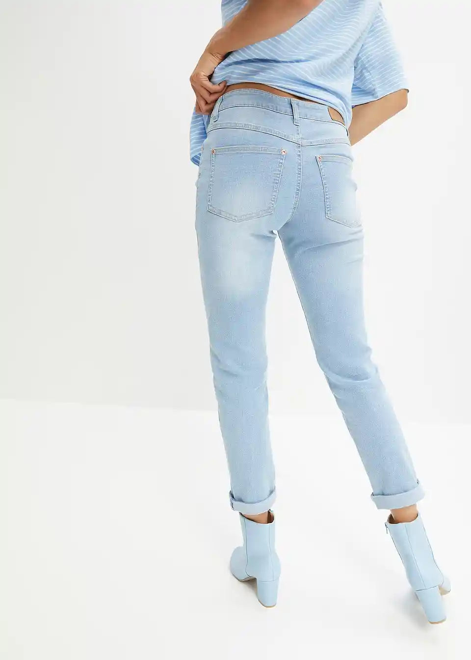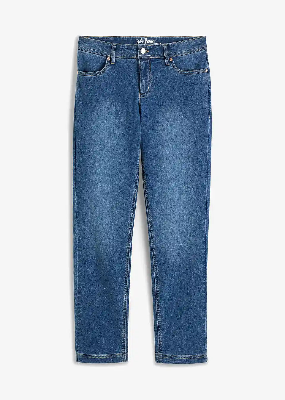 Ravne kavbojke s srednje visokim pasom in stretch materialom