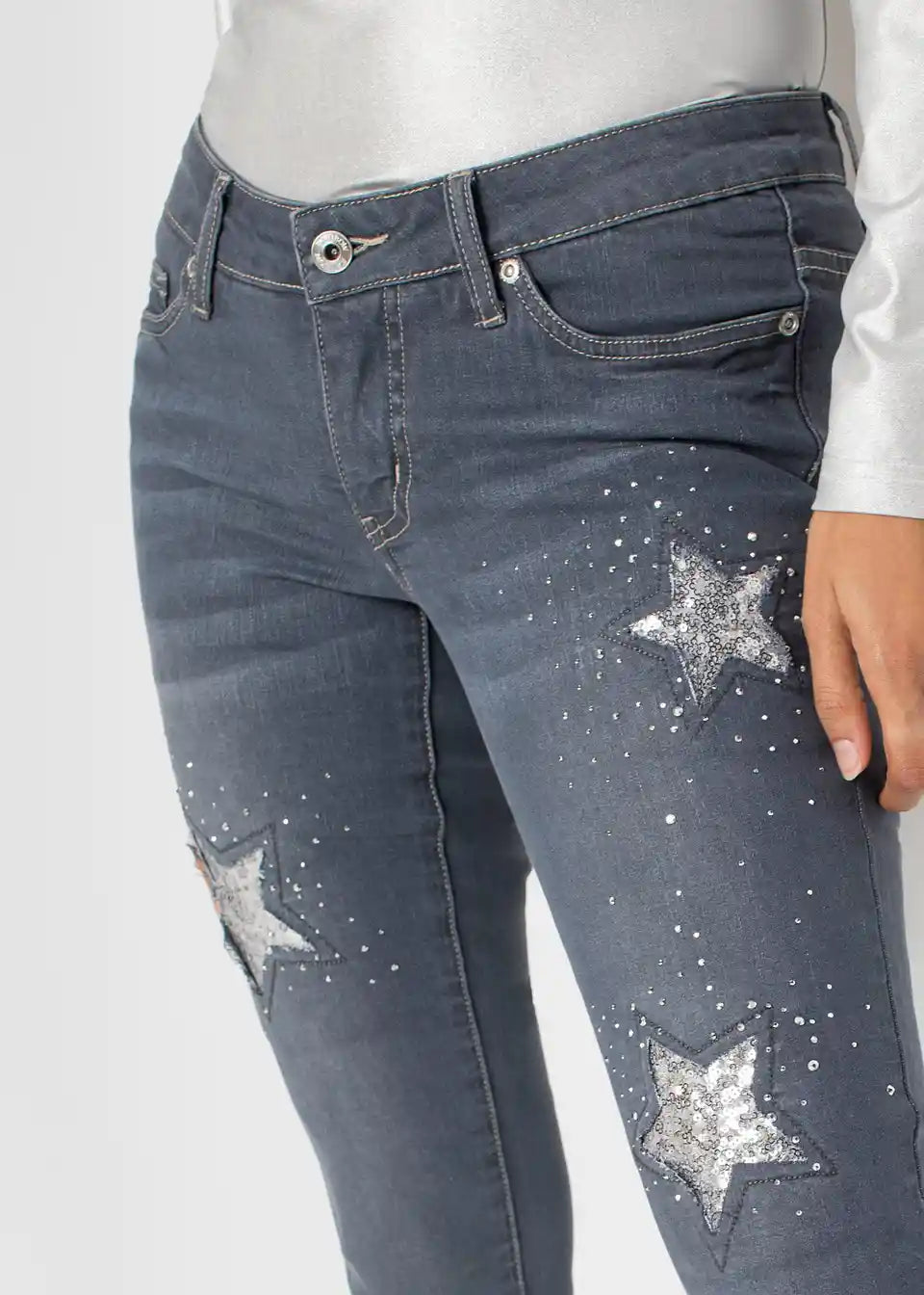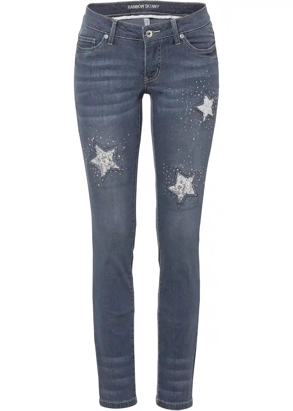 Trendovske Skinny-Jeans s pajkicami in detajli zvezd