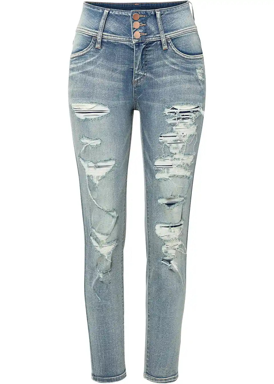 Oprijete kavbojke z visokim pasom in stretch materialom