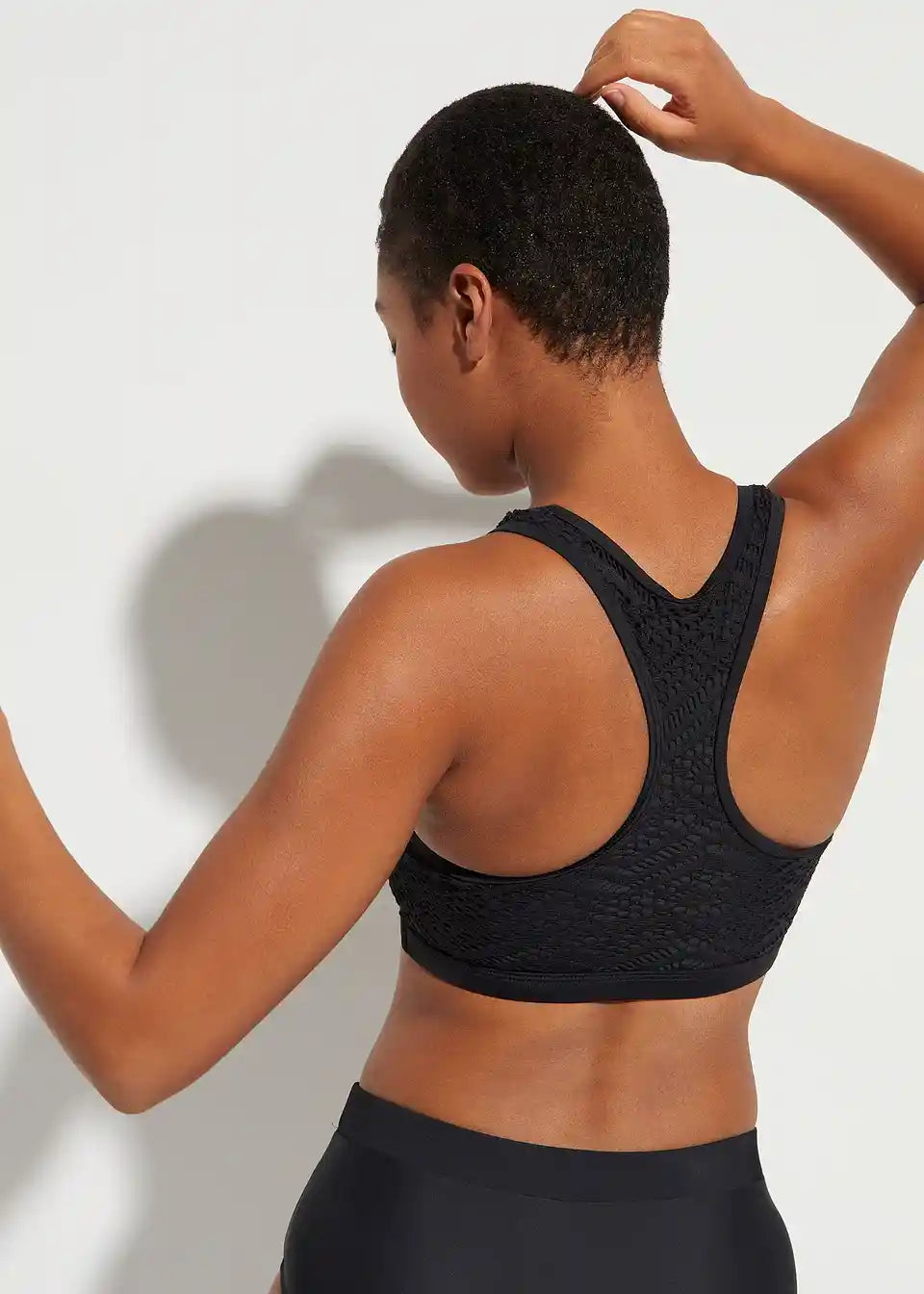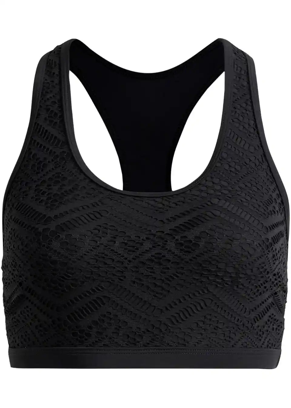 Z dirkaškim hrbtom. Z podlogo za prsi. Z všitim elastičnim trakom pod prsmi.