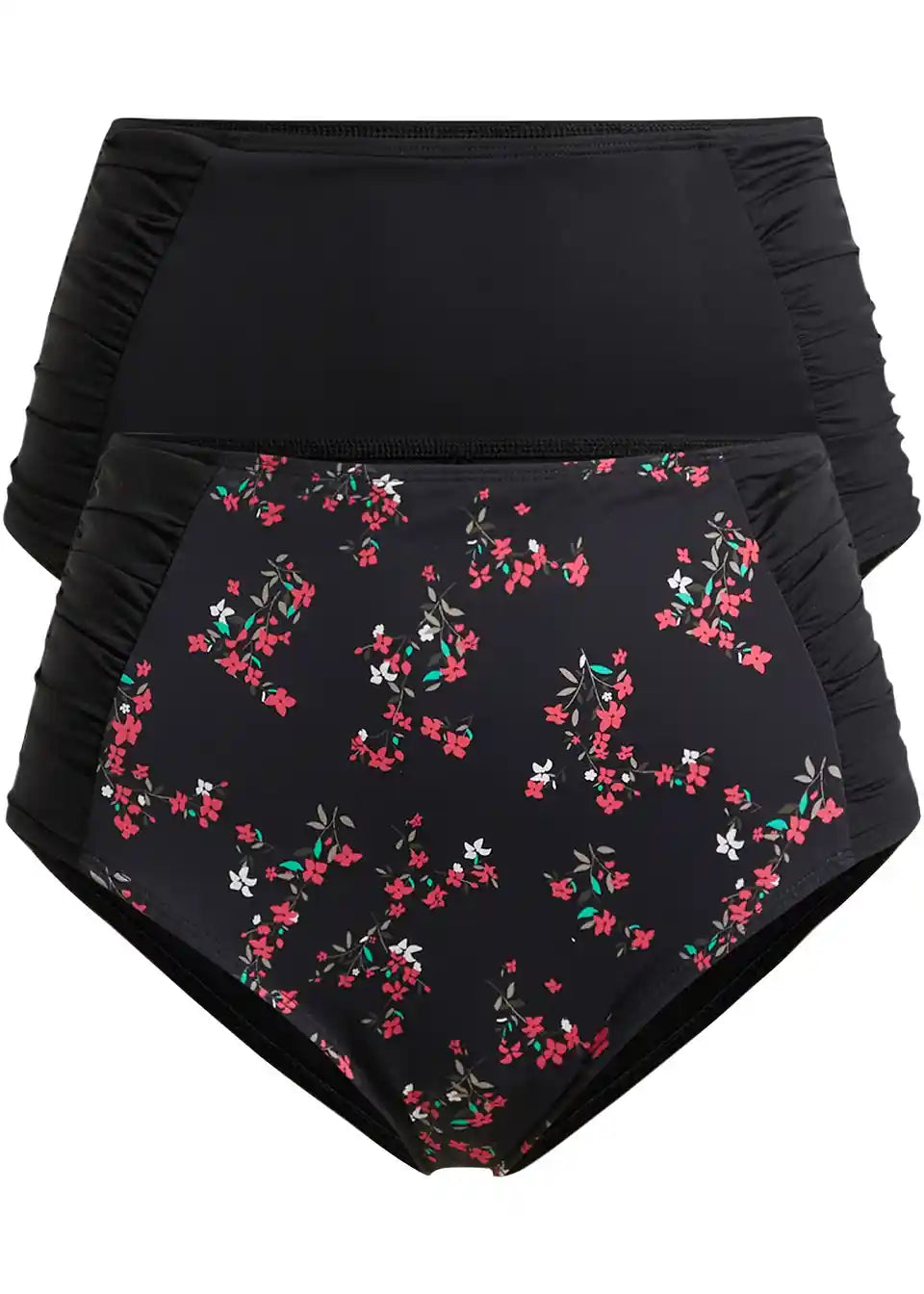 Negovane oblikovalne bikini hlačke v 2-delnem pakiranju črna črna s cvetličnim vzorcem