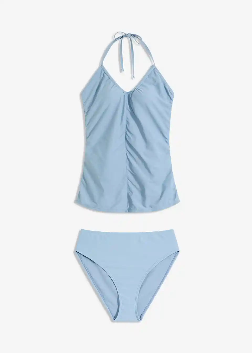 Dvodelne tankini kopalke z naramnicami na zatilju in naborki