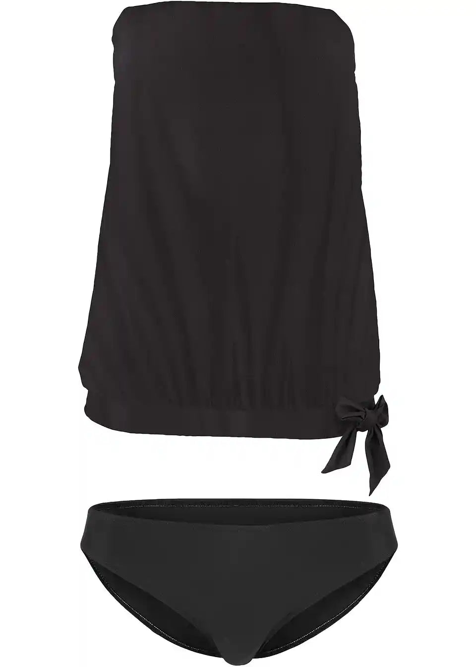Z Oversize Tankinijem znamke bpc selection so dame v bazenu in na plaži elegantno oblečene. Zgornji del navdušuje z ohlapnim krojem s čudovitim naborkom in odstranljivimi multifunkcijskimi naramnicami. Izdelan je v elegantni kombinaciji vzorcev in ima ob strani trakove za zavezovanje. Model odlikujejo podloga za prsi, vgrajene mehke košarice in prilagodljiv trak pod prsmi. Ujemajoče se hlačke so oblikovane v klasični obliki.