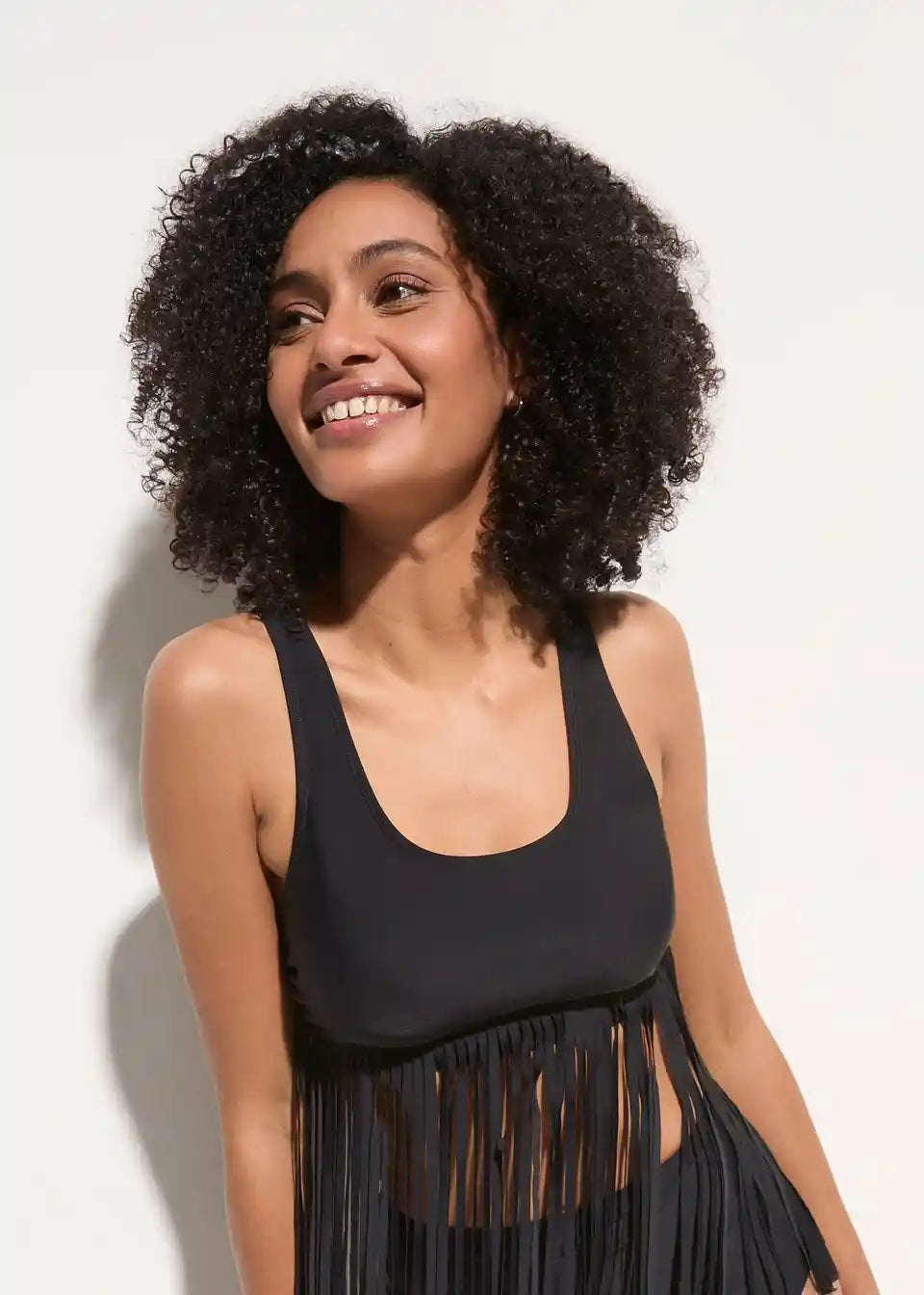 Passt perfekt, kaschiert gut. Mal schauen, ob am Ende des Urlaubs noch alle Fransen da sind. Mich stört lediglich, dass das Oberteil zwar zweilagig gearbeitet ist, man aber trotzdem die Brustwarzen sieht. Ich habe das Oberteil innen ein wenig geöffnet und
