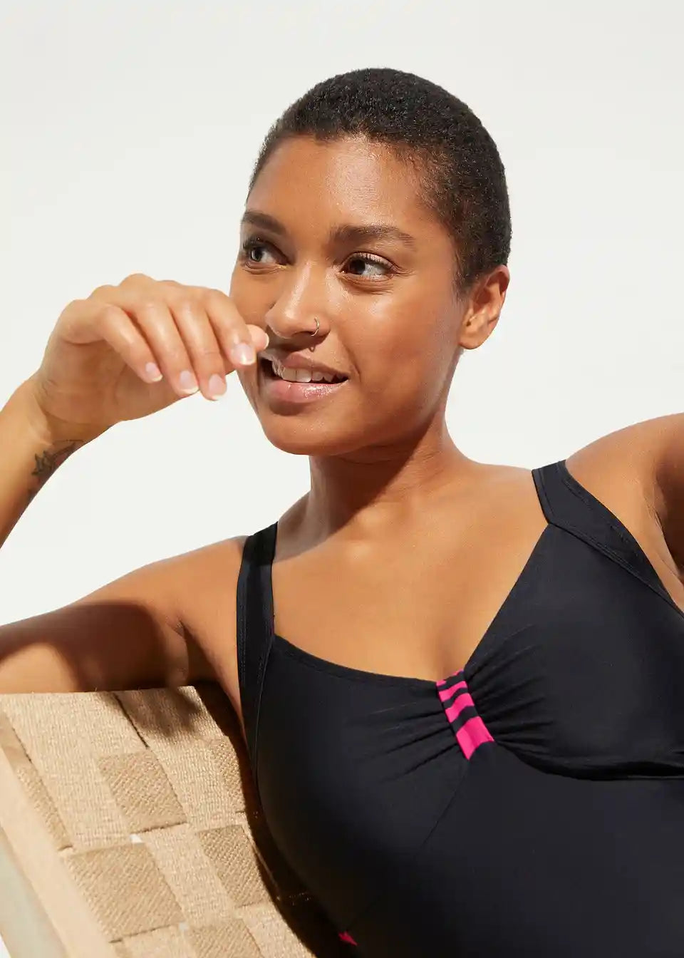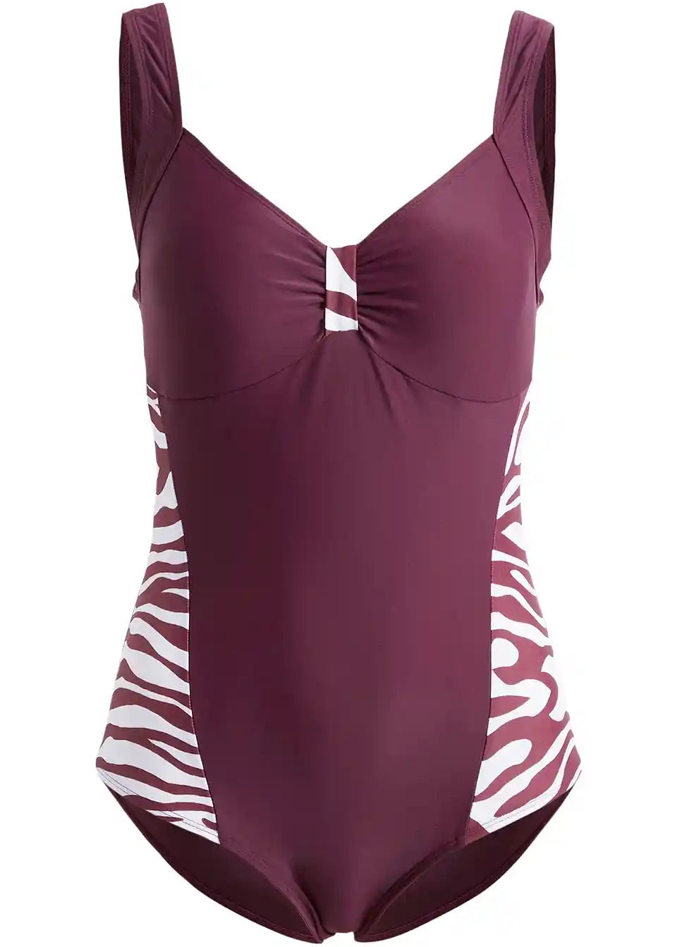 Kopalke, priporočene s strani Maite Kelly: Elegantne kopalke z všitki očarajo z diskretnimi detajli. Izrez je okrašen z rahlim naborkom in kontrastnim všitkom. Vzorci ob straneh optično zožajo pas. Te preproste in elegantne kopalke zagotavljajo udobje zaradi mehkih košaric, prsnega traku in podloge za prsi. Ženske kopalke se lahko elegantno kombinirajo tudi s kratkimi hlačami in tuniko.