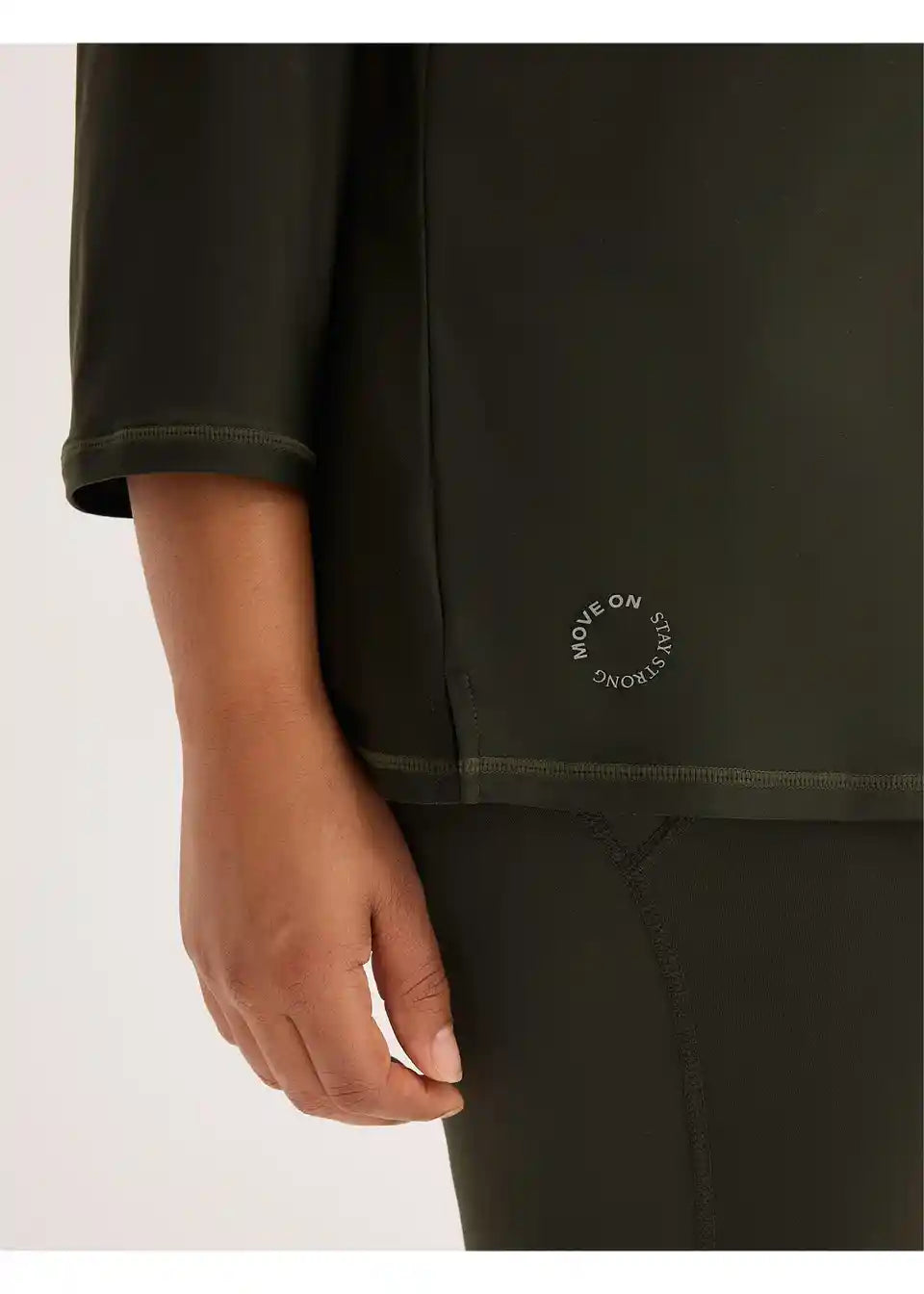 Ohlapna ultramehka funkcijska majica s 3/4-rokavi in stranskimi razporki, ki se zelo hitro posuši