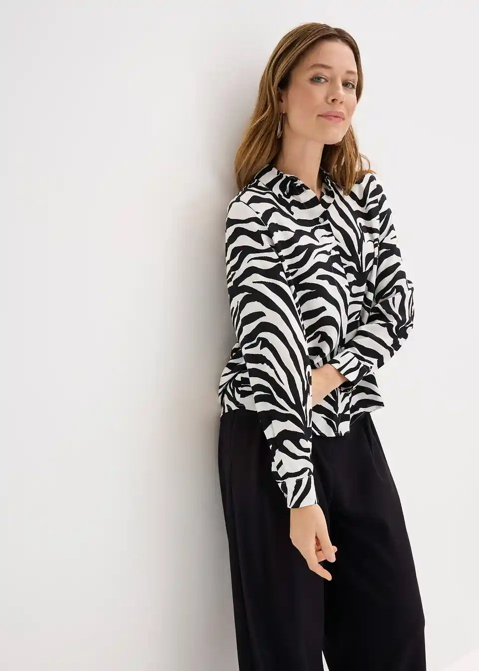Modna bluza z letvijo za zapenjanje spredaj in rahlo voluminoznimi rokavi