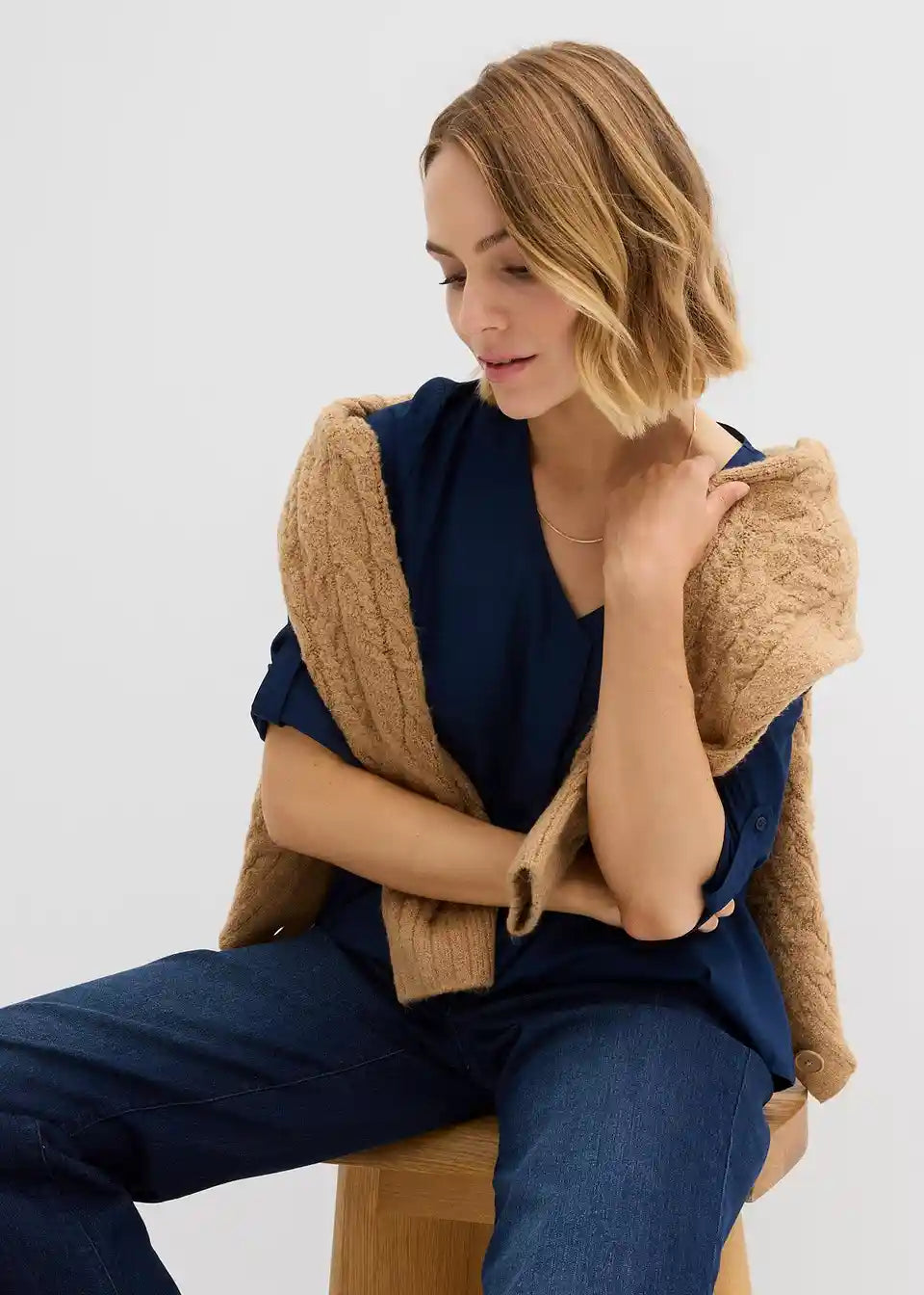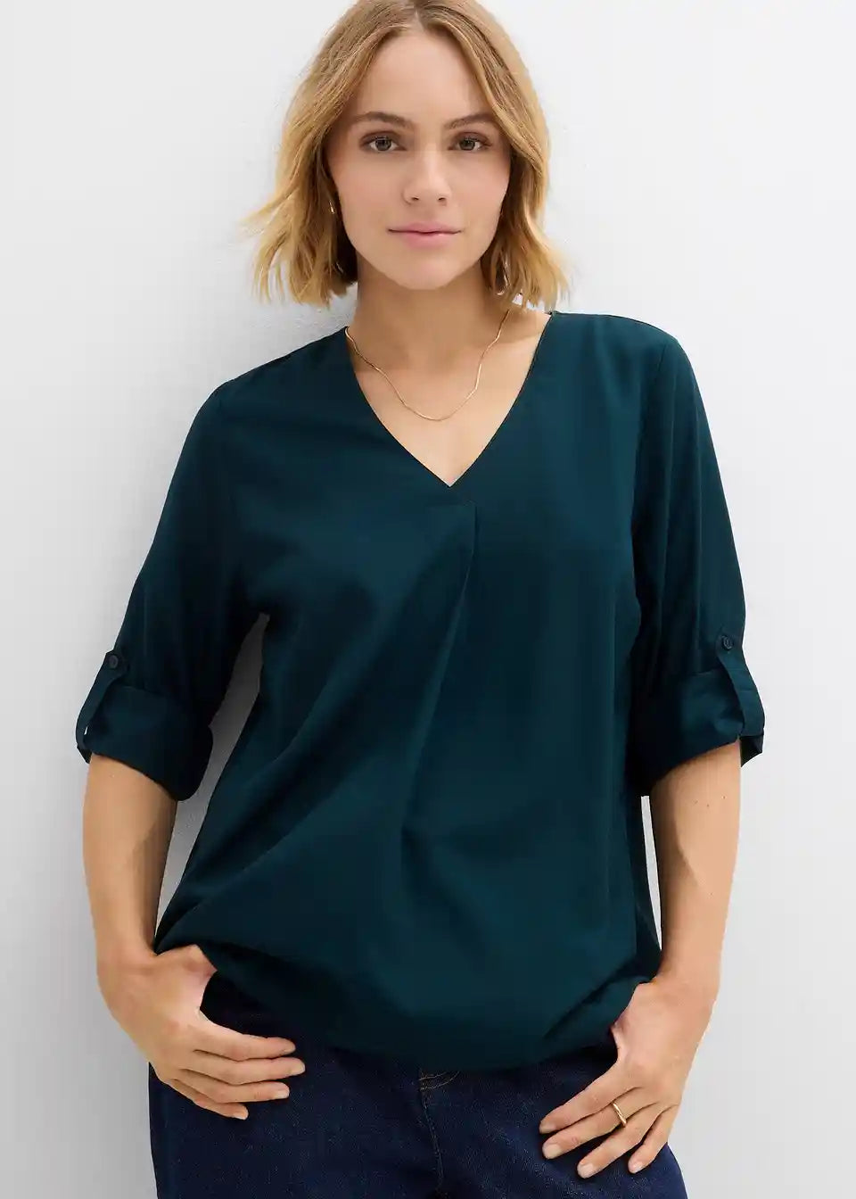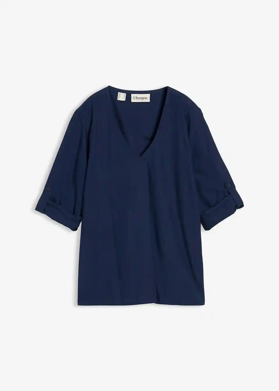 Po telesu padajoča bluza s 3/4-rokavi iz mehke viskoze