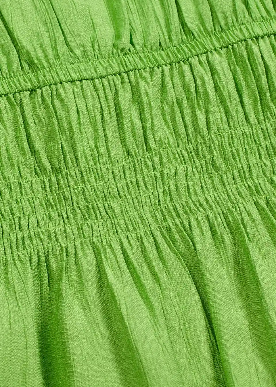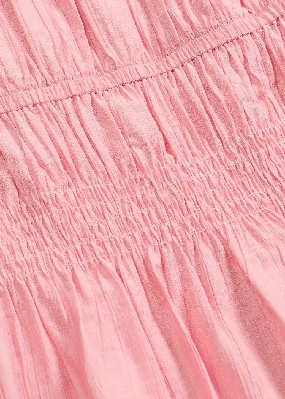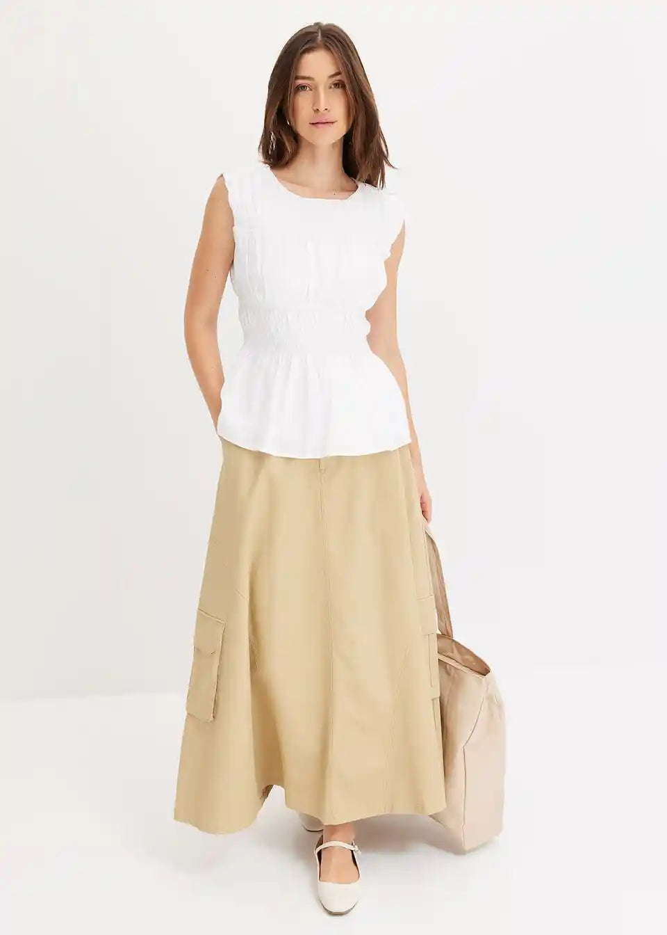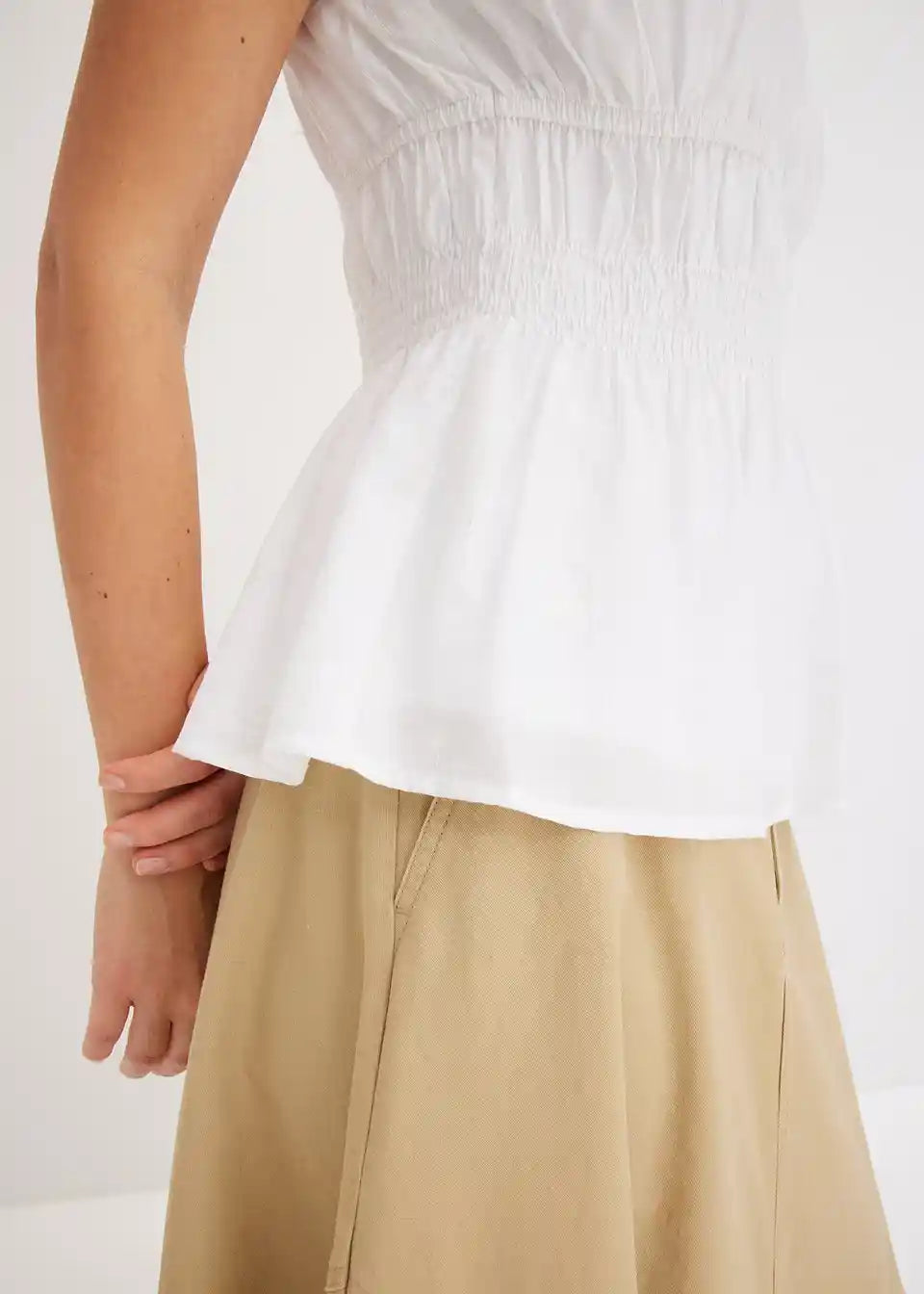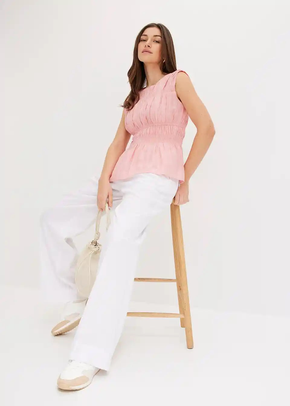 Bluzni top z okroglim izrezom in nabranimi detajli, ki sega do bokov
