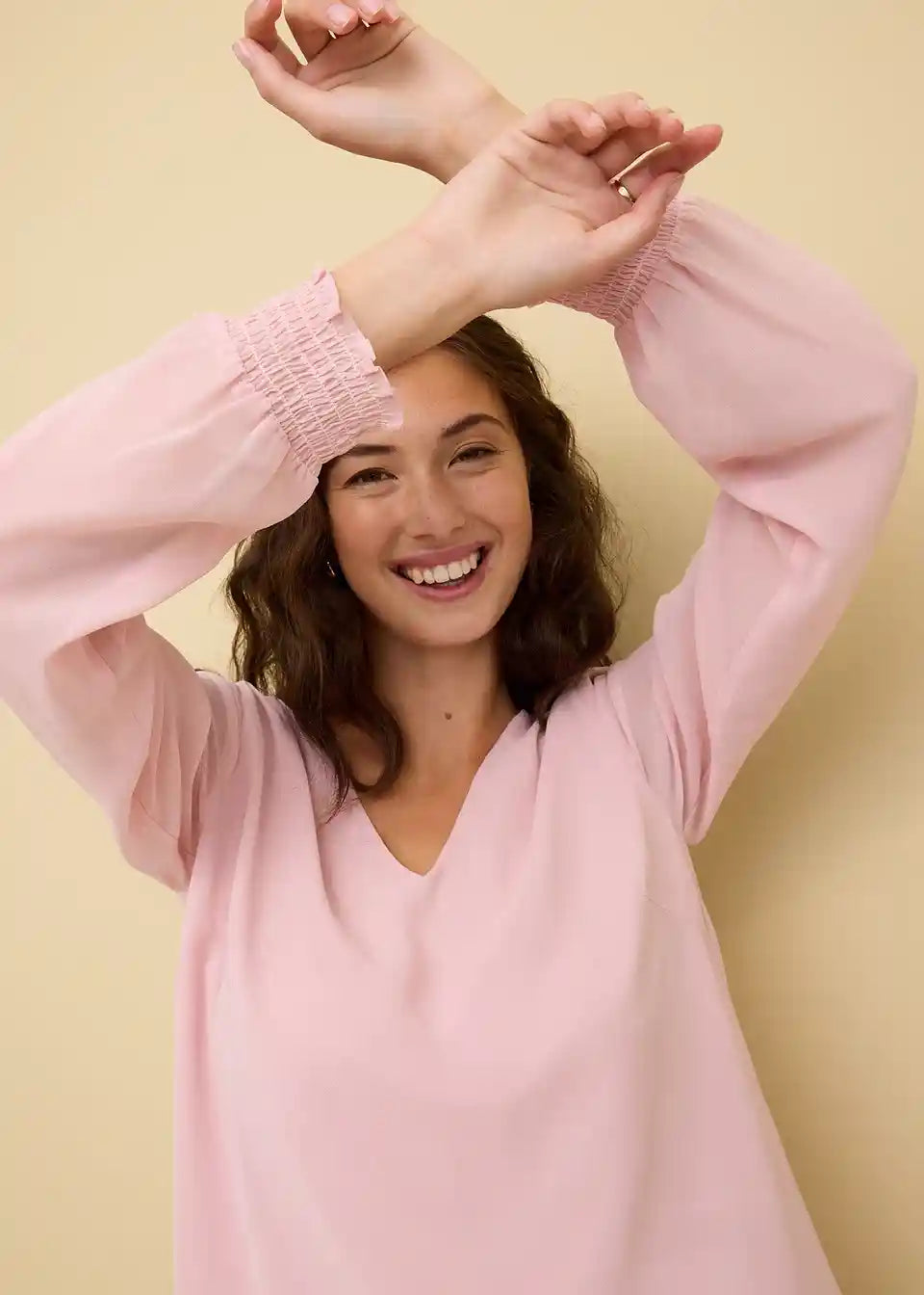 Elegantno kombinirana tunika-bluza z nabranimi manšetami
