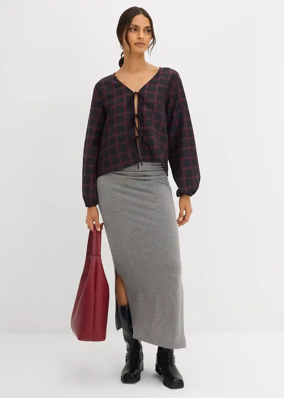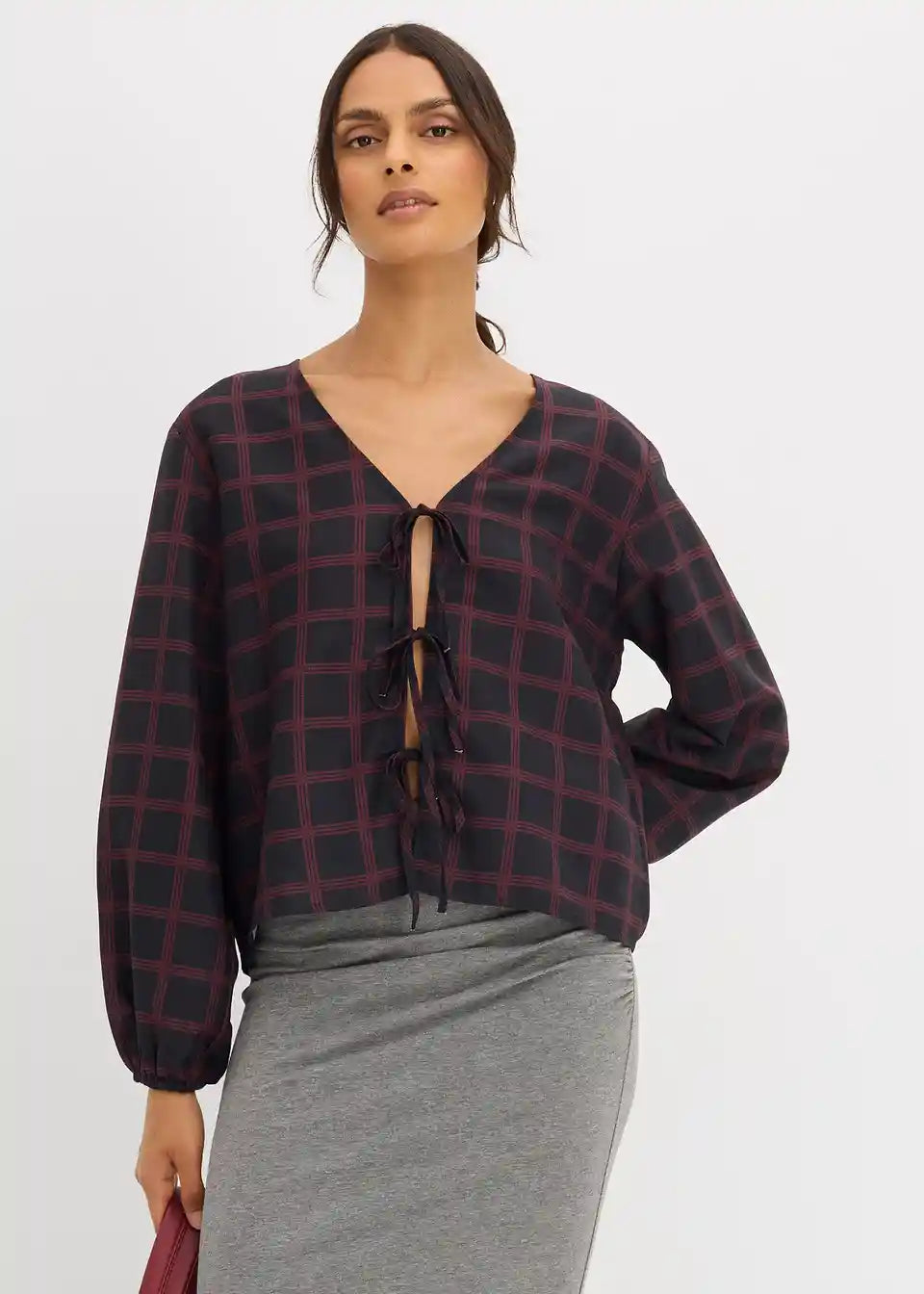 Udoben ohlapna bluza iz mehke viskoze za zavezovanje
